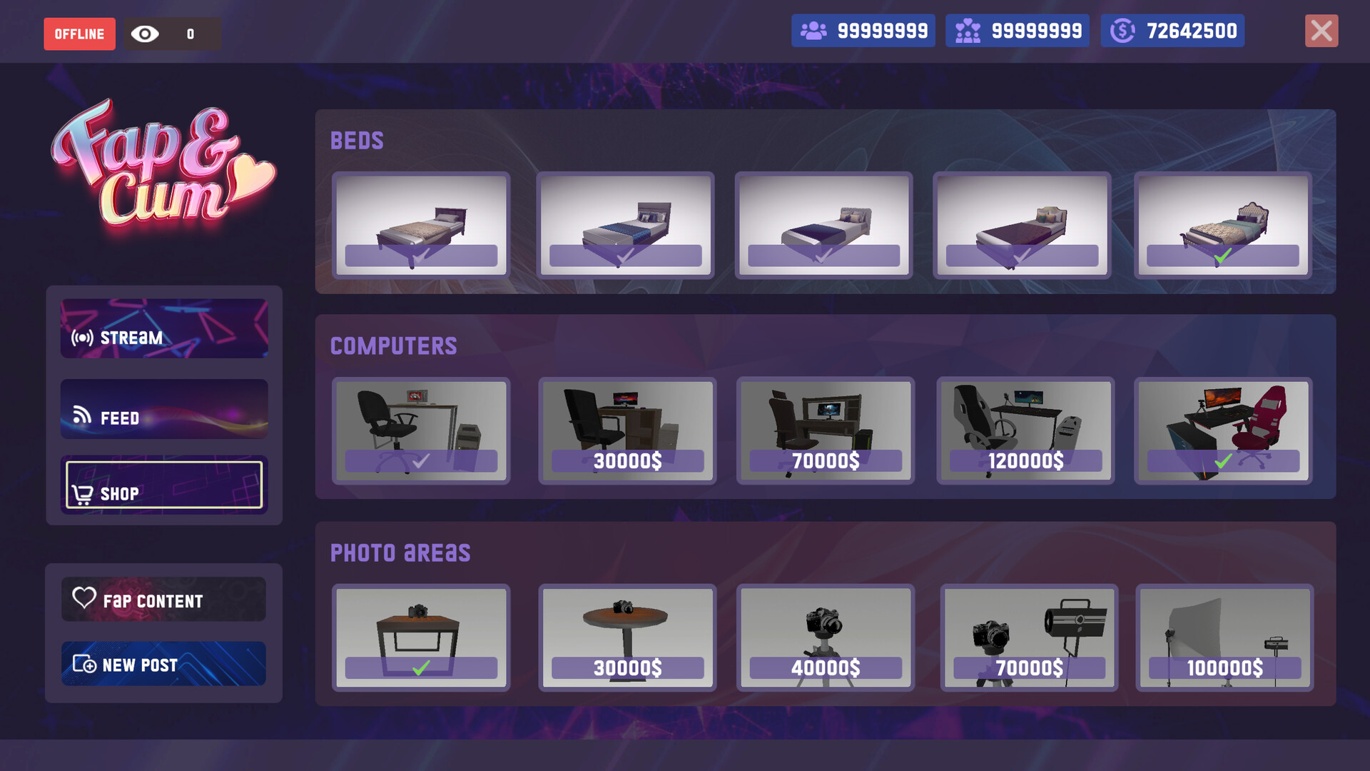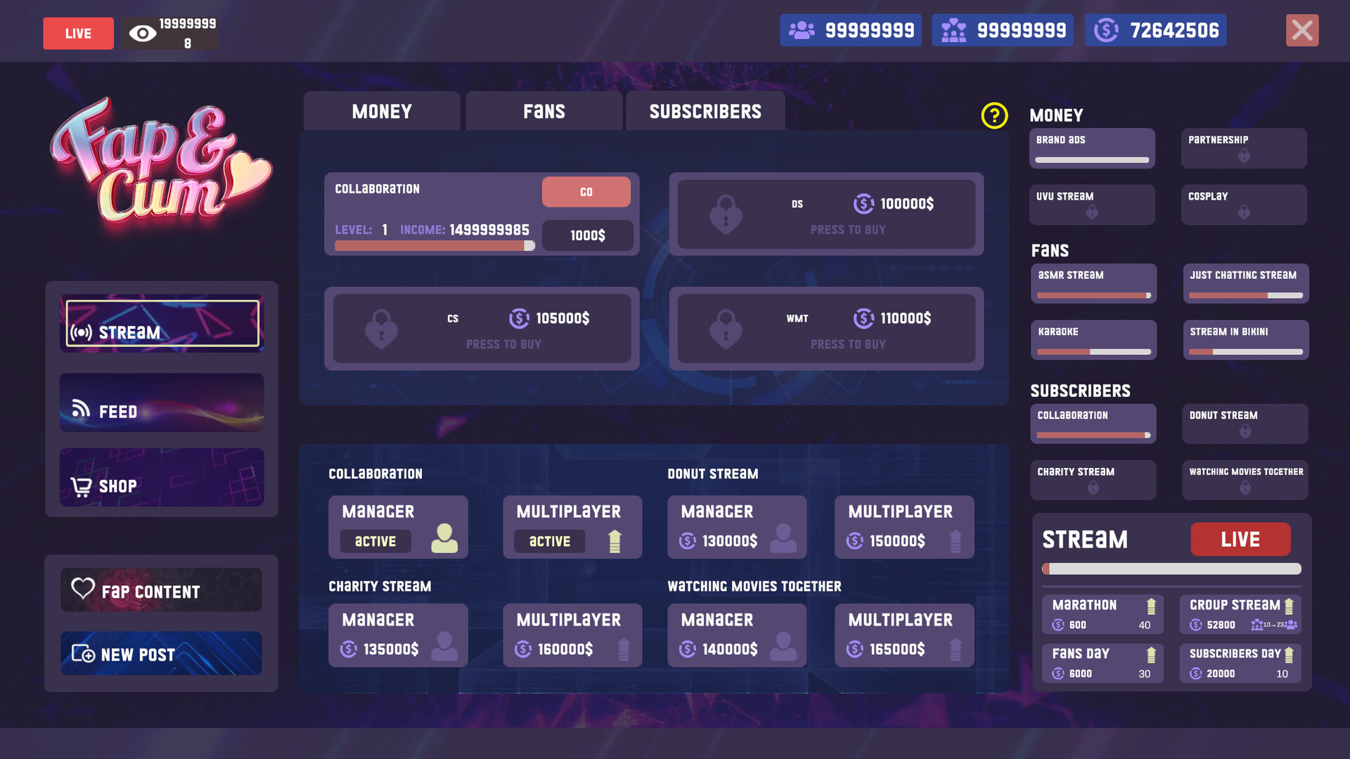 Fap & Cum 💦 is a casual clicker adult game that looks like a popular social media. You should help main character to earn enough money to start making streams.