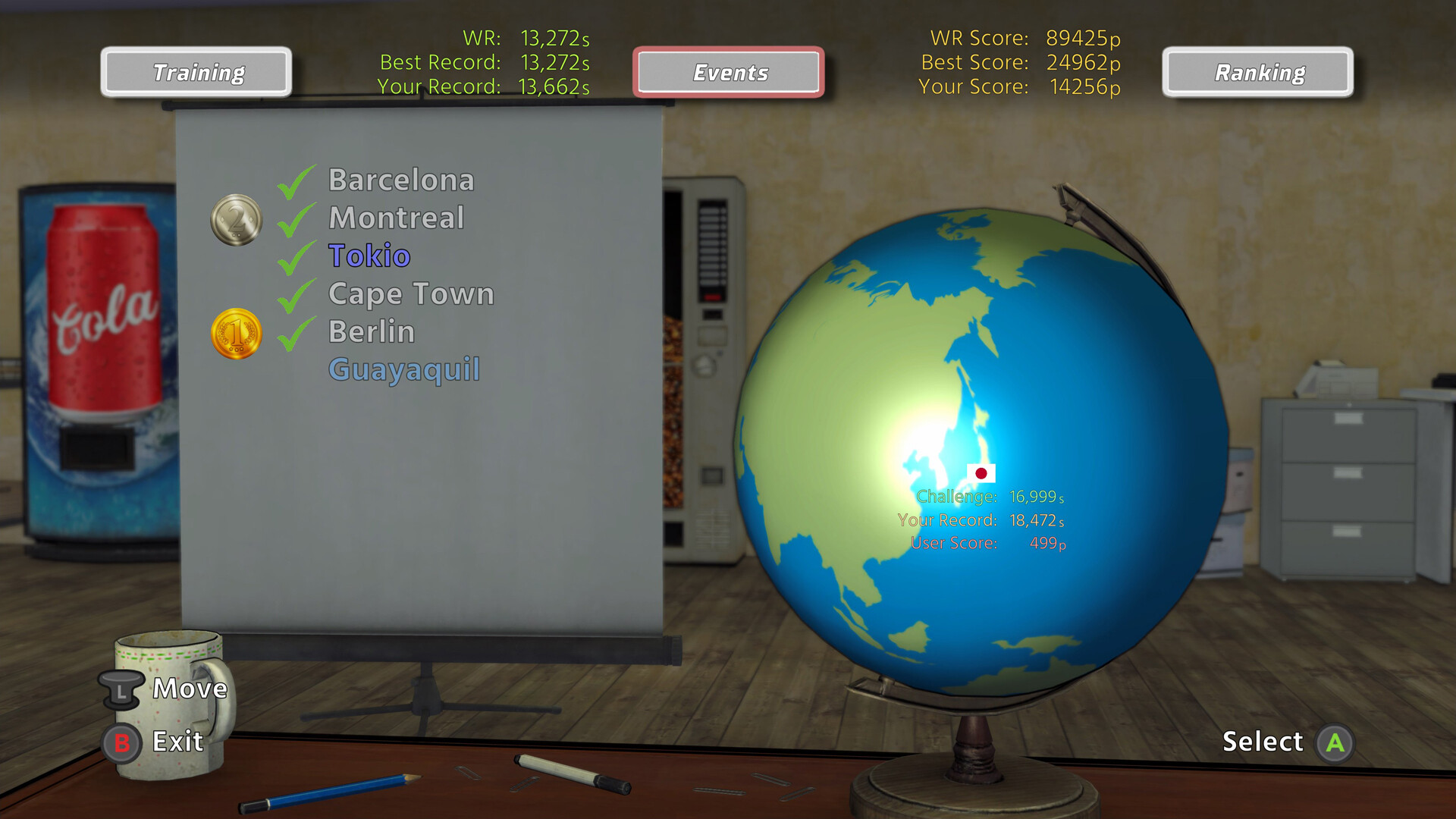- Travel around the world passing all events.