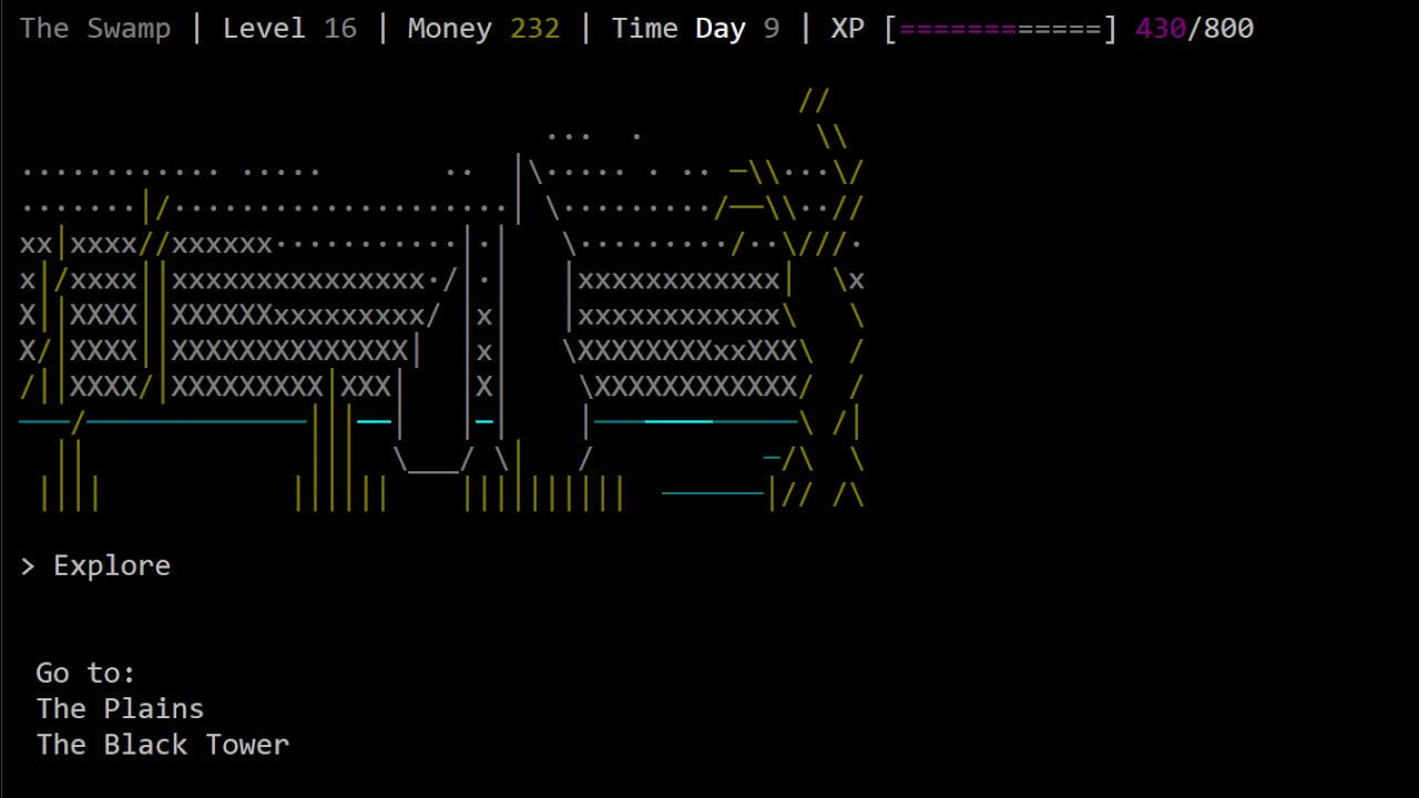 Feels is an ASCII and Text-Based RPG where every one of your decisions can influence the world in which you evolve. It is filled with organic story lines, diverse endings and strategic turn-based combat.