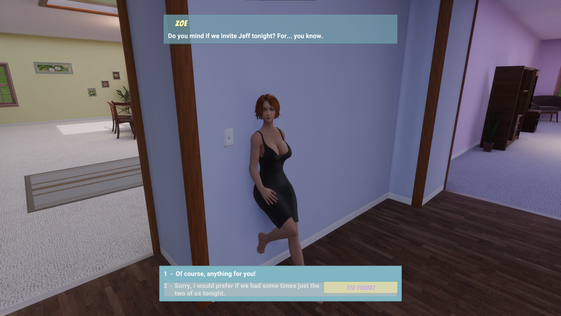 The relationship between you and Zoe is a balance of power. Not everything is to your liking, but Zoe still wants to try new things. Zoe will react to your behavior and will evolve based on your preferences.