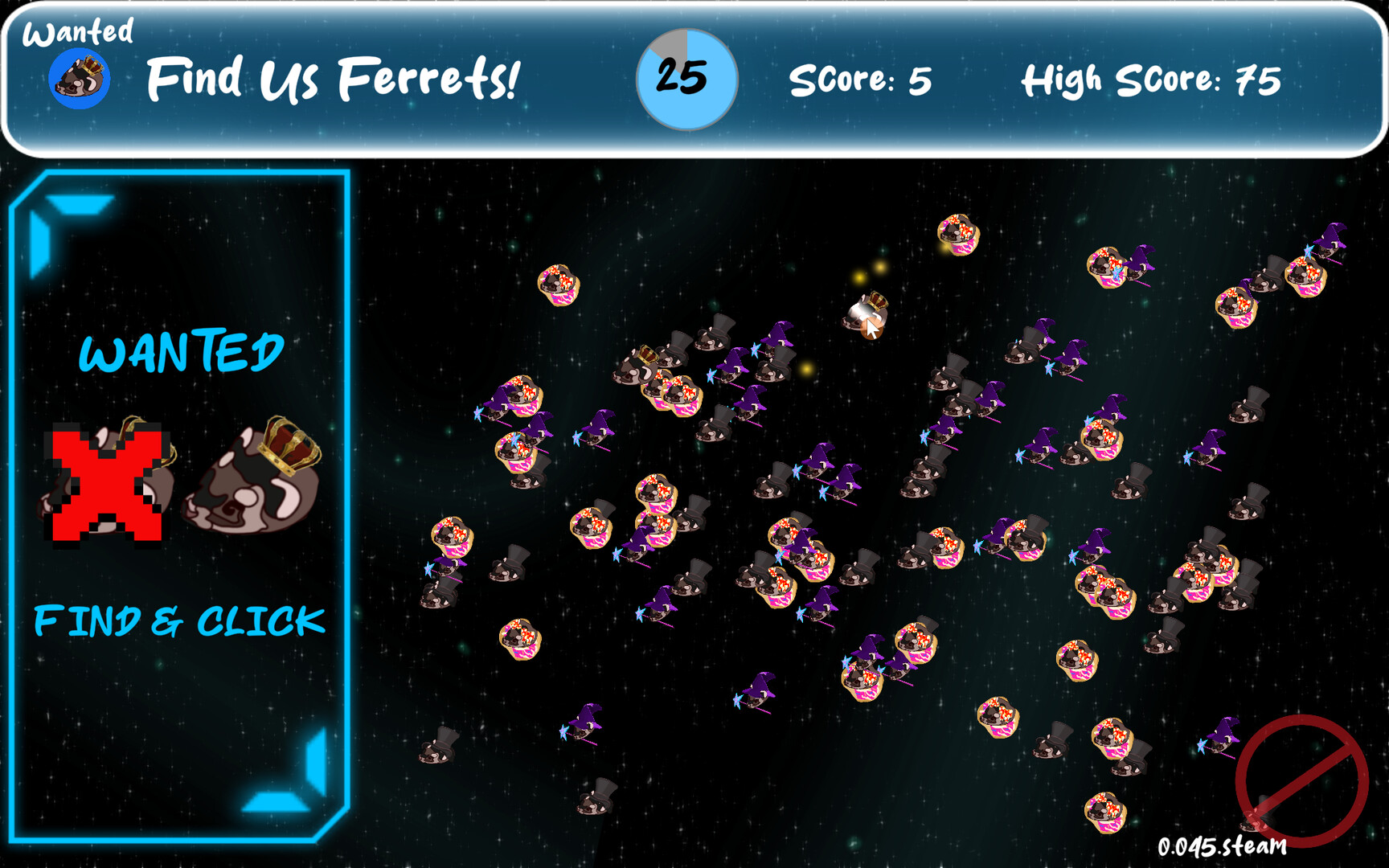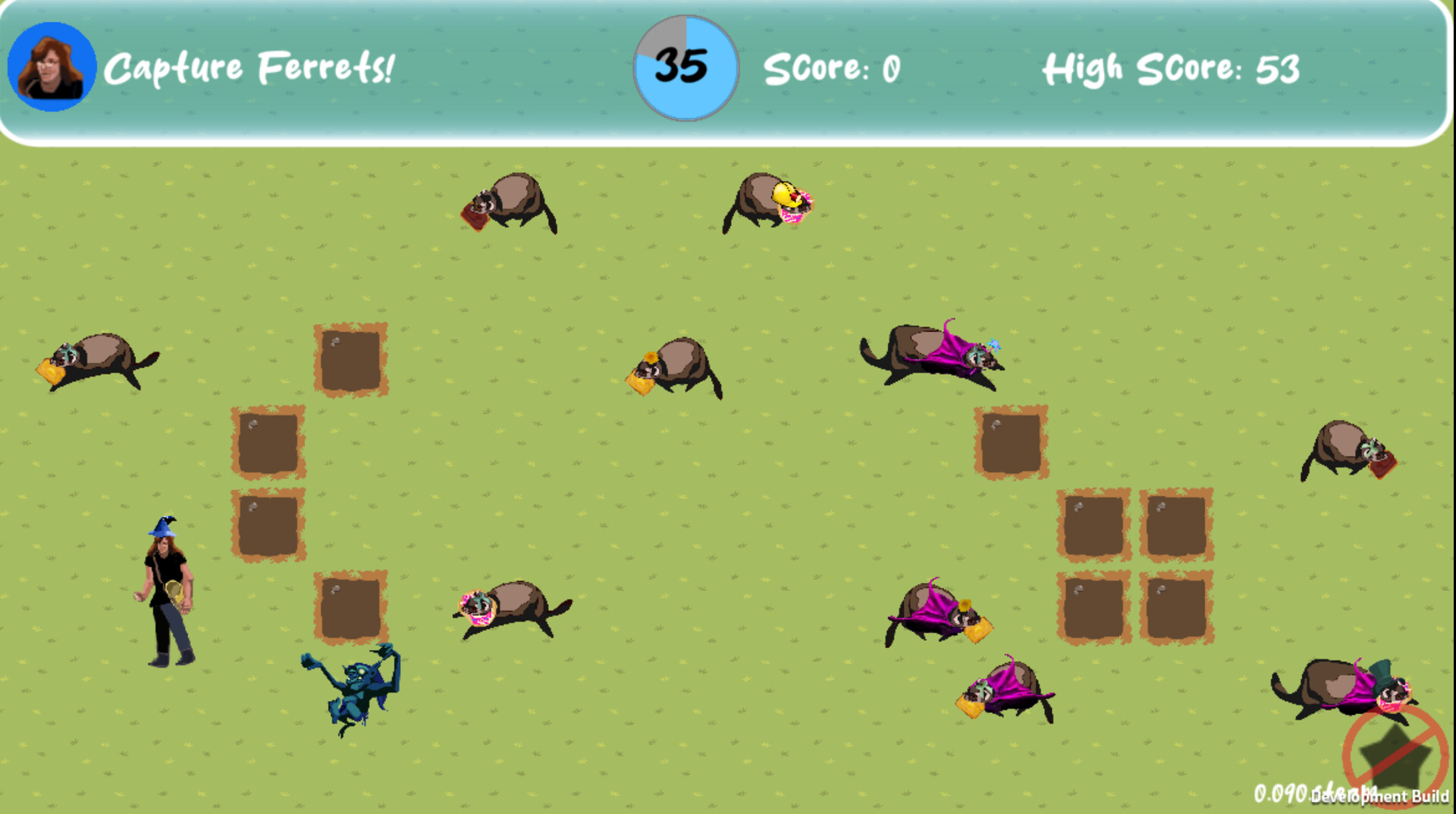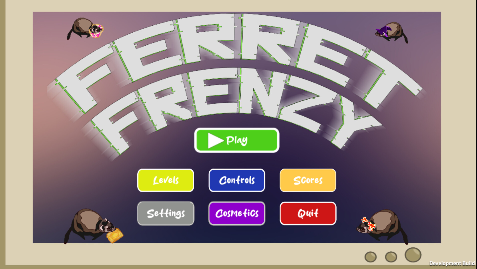 Ferret Frenzy is a free compilation of four minigames with three variants each, originally created for Pirate Software's January 2024 Game Jam. Access the variants by going to Level Select or in the settings menu, changing the Variant Dropdown, and then clicking Play on the main menu.