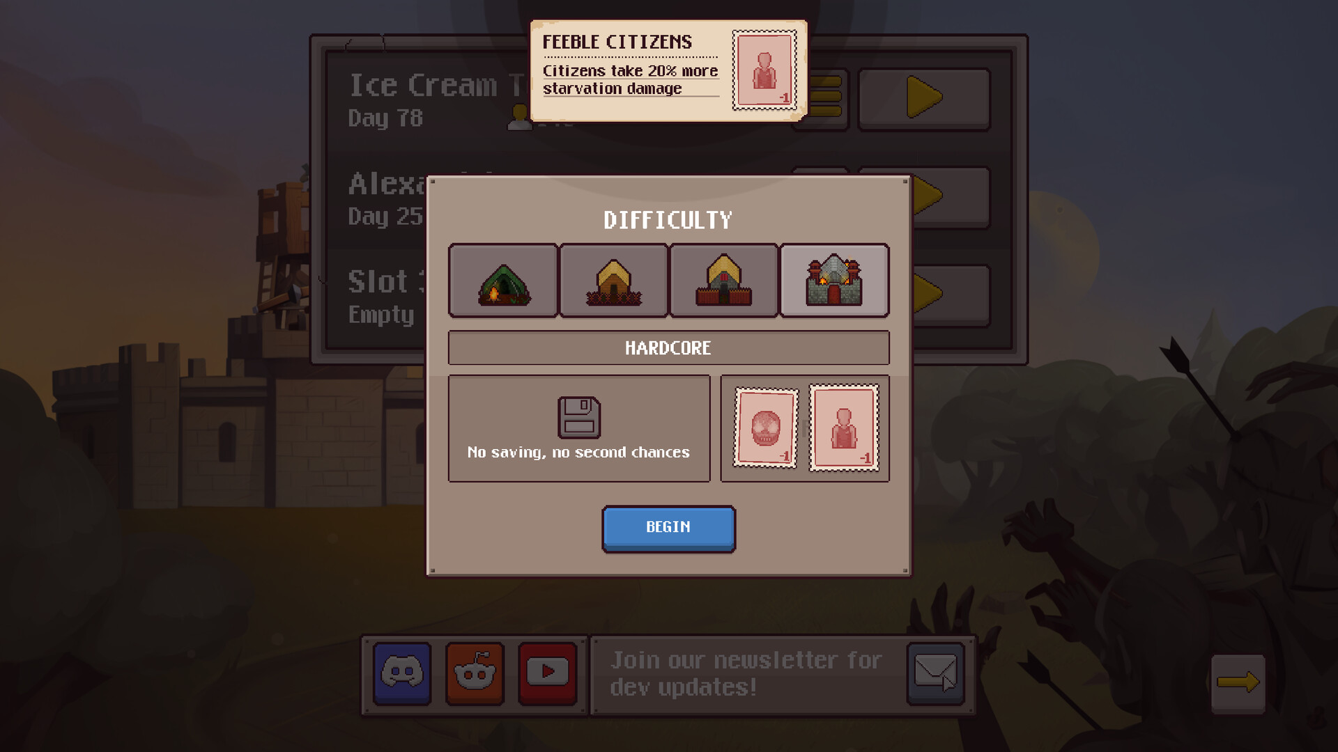 Final Outpost is a survival strategy base-builder. You lead the last survivors of the apocalypse. Assign roles, craft tools, and manage resources carefully. Construct buildings, level up your citizens, and fortify your town against hordes of zombies. How many days can you survive?