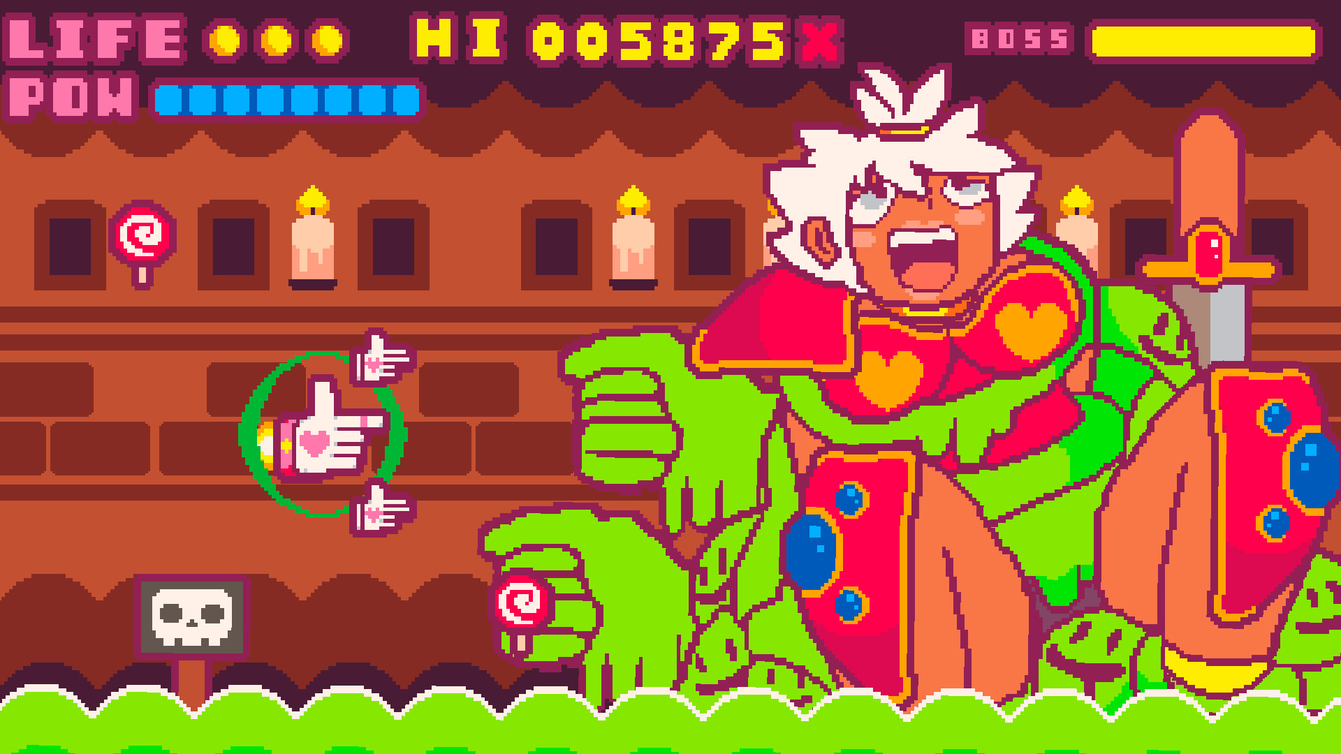 Fortunately, you’ve got the world’s most powerful weapon, “Fingun” ready to take care of the situation. Defeat these bountiful babes by shooting their clothes off!