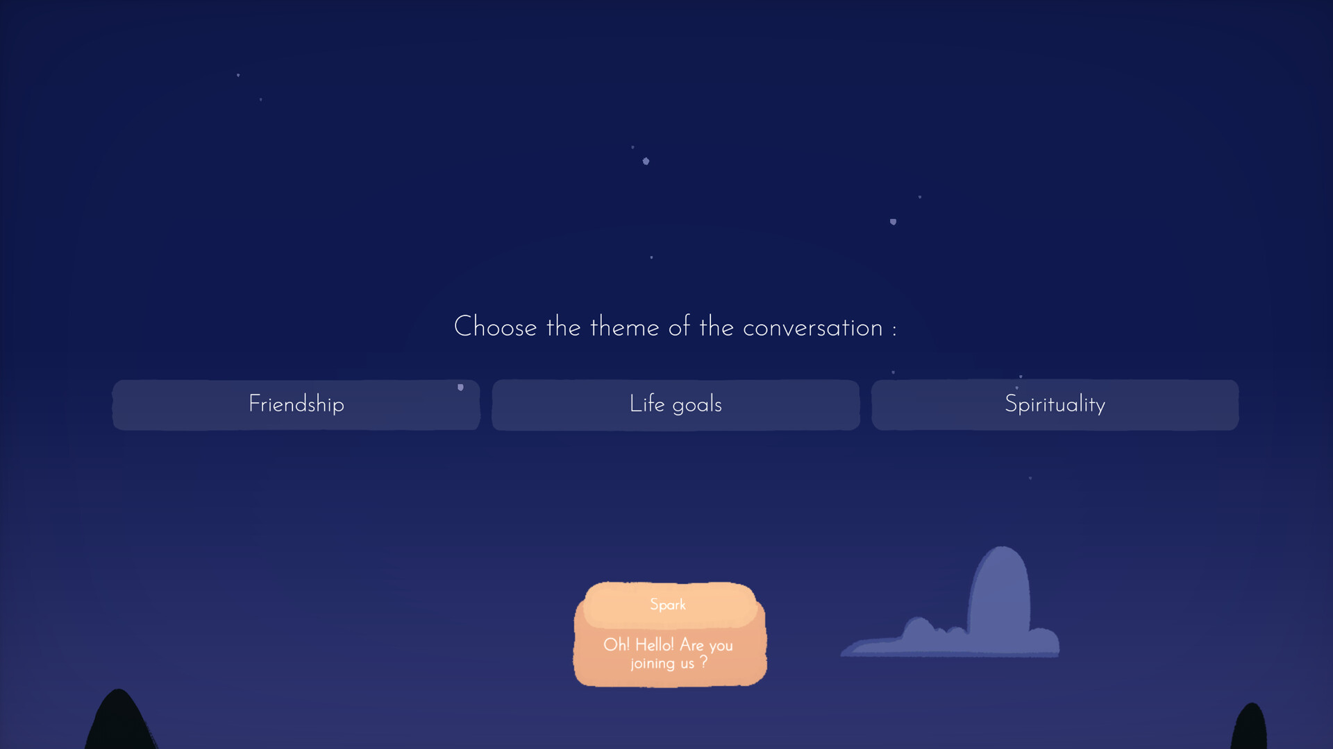 To ensure a positive and benevolent experience, all responses are moderated and filtered. You can choose to no longer interact with certain interlocutors and set triggers to avoid. The game encourages empathy and kindness by allowing you to click on shooting stars to collect customization elements to offer to other players you appreciate.