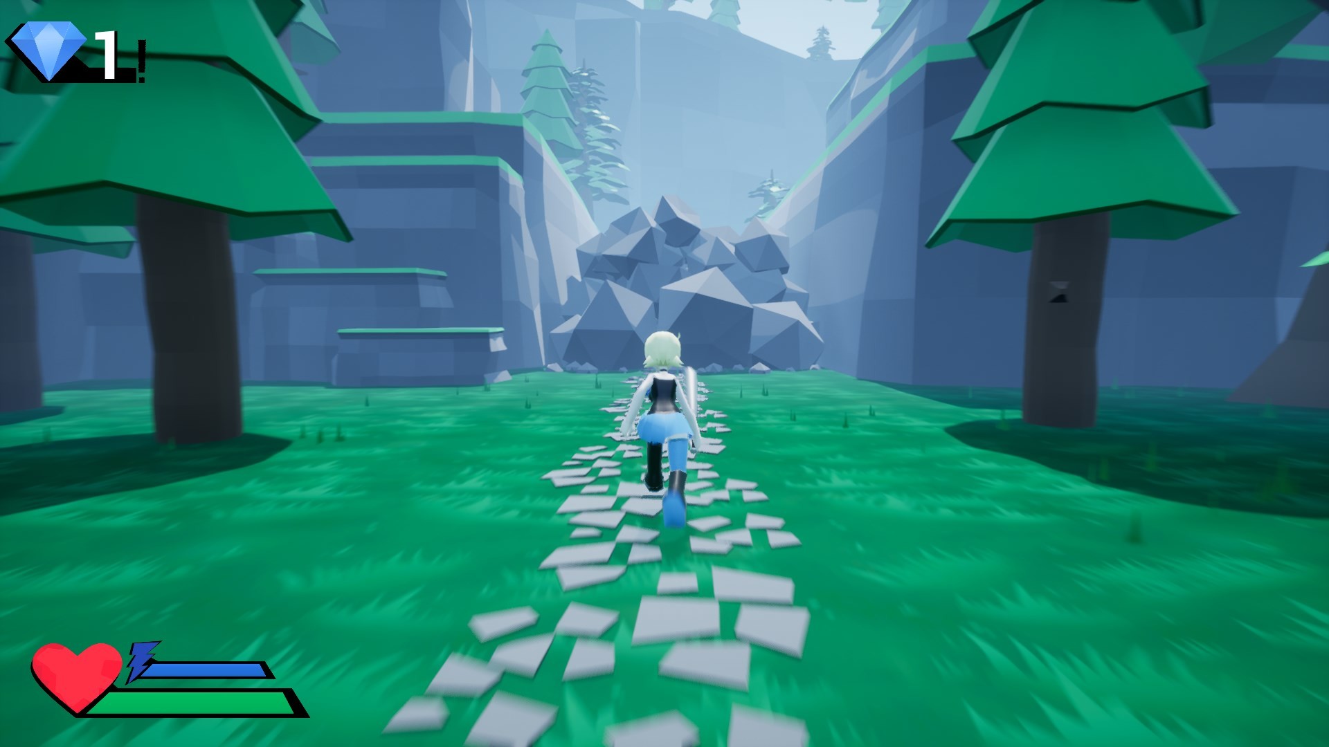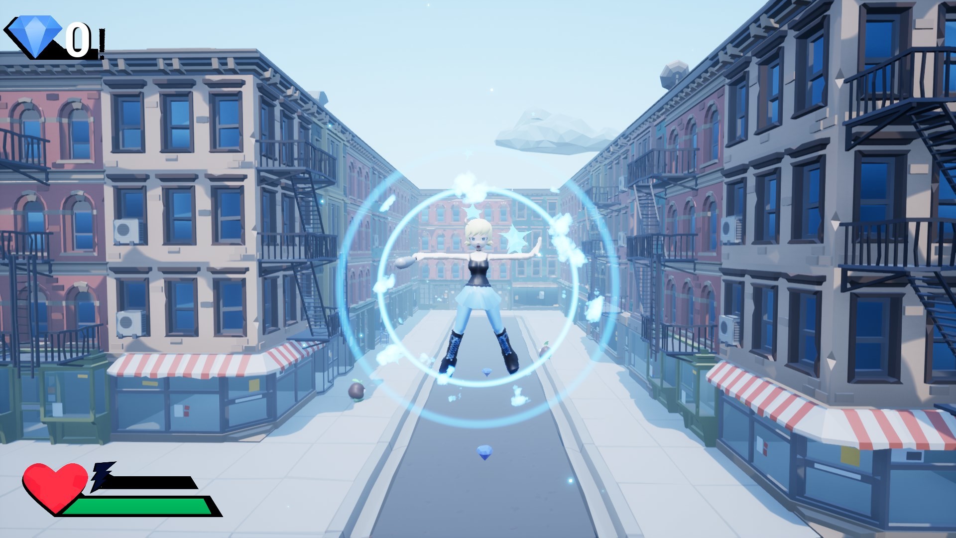 - 10 different levels - Varying objectives; platforming, fighting, or collecting gems - 2 different enemies. Kill them with club - Double Jumping and Airdashing - A Roll with invulnerability - A Burst mechanic that restores your Airdash and Double Jump - Gems that fill the Action Gauge - Steam achievements