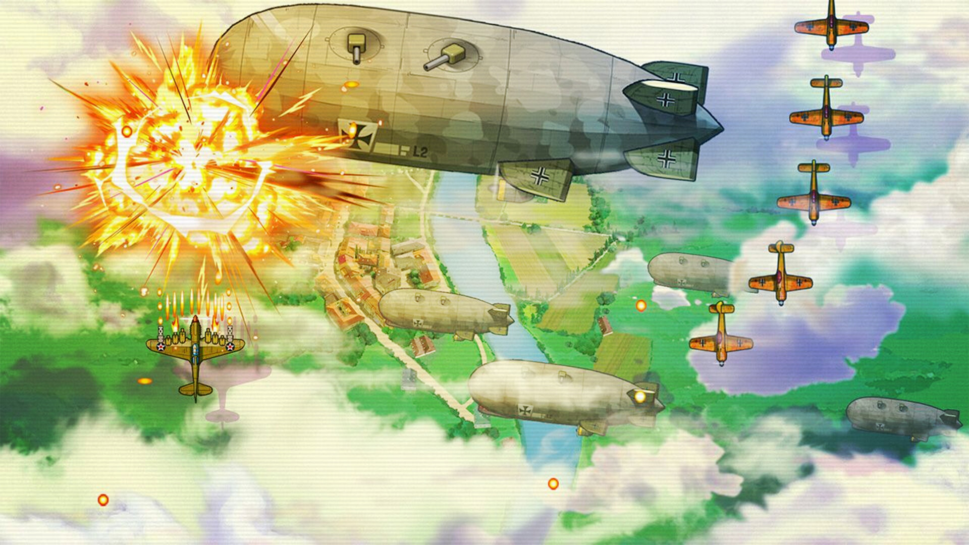 Become part of the Flying Pigs and free the world from tyranny. Face the enemy of freedom in this unique shoot 'em up set in the skies of World War II. Eyes up, rookie! It's time for pigs to take flight!