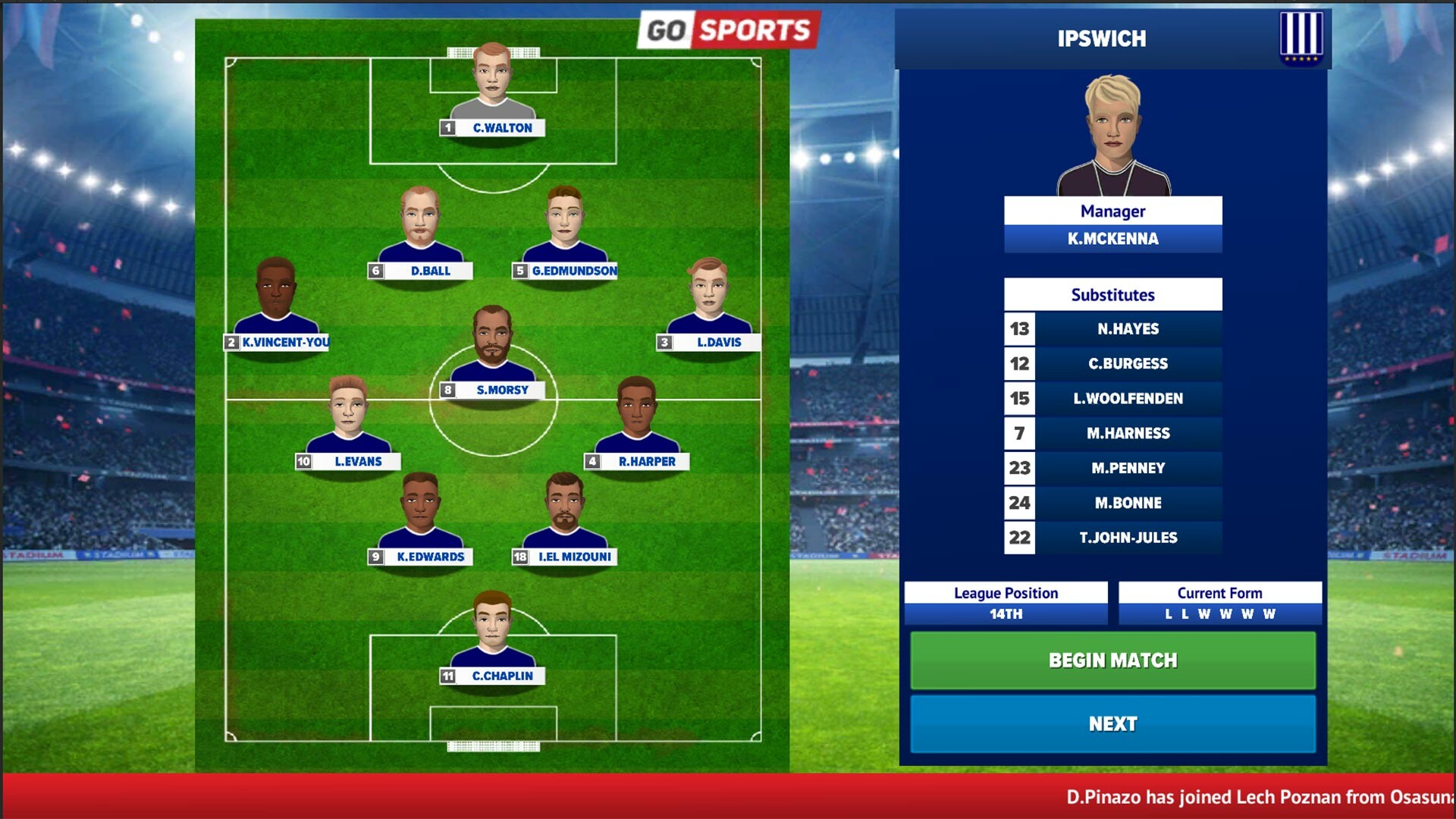 Leave key decisions to the Football manager or overrule him by implementing your own play style and deciding on team line-up, formation, in and out-of-possession tactics, substitutes and more.
