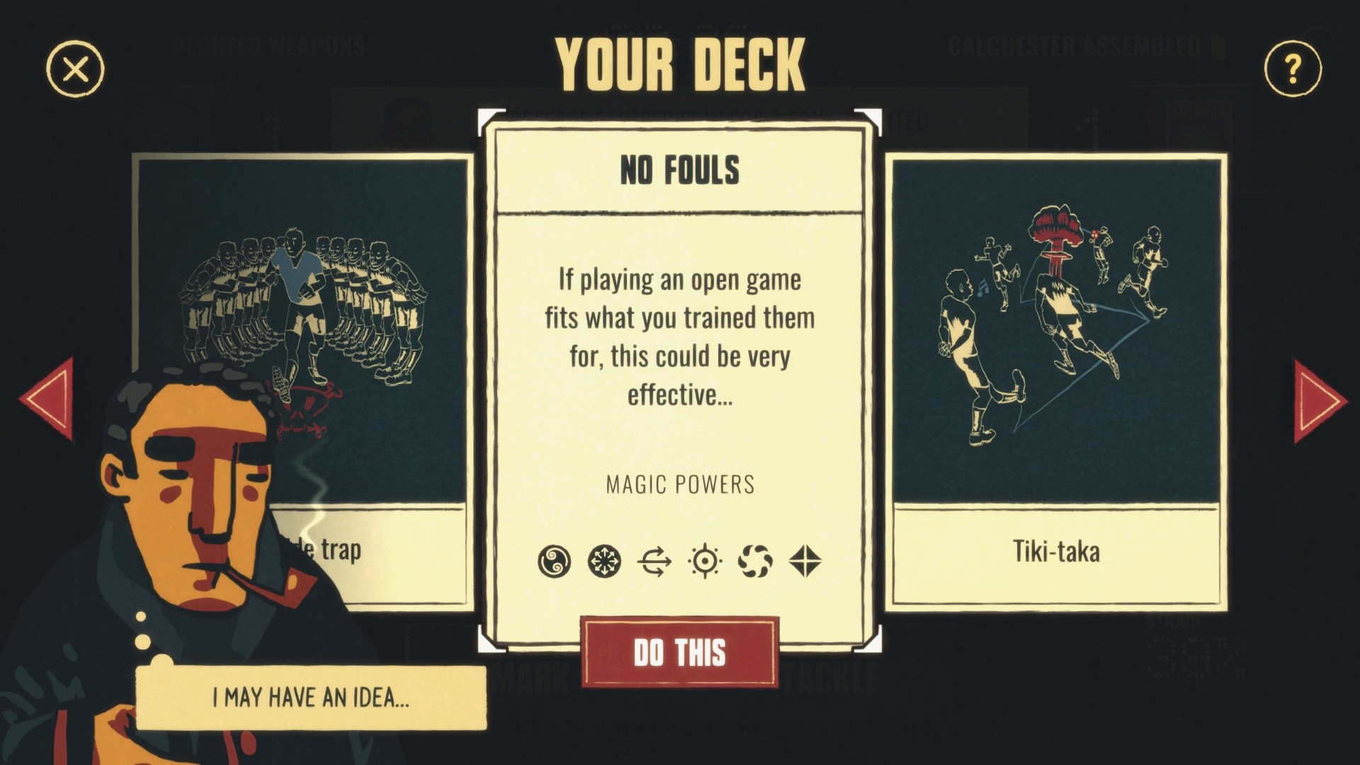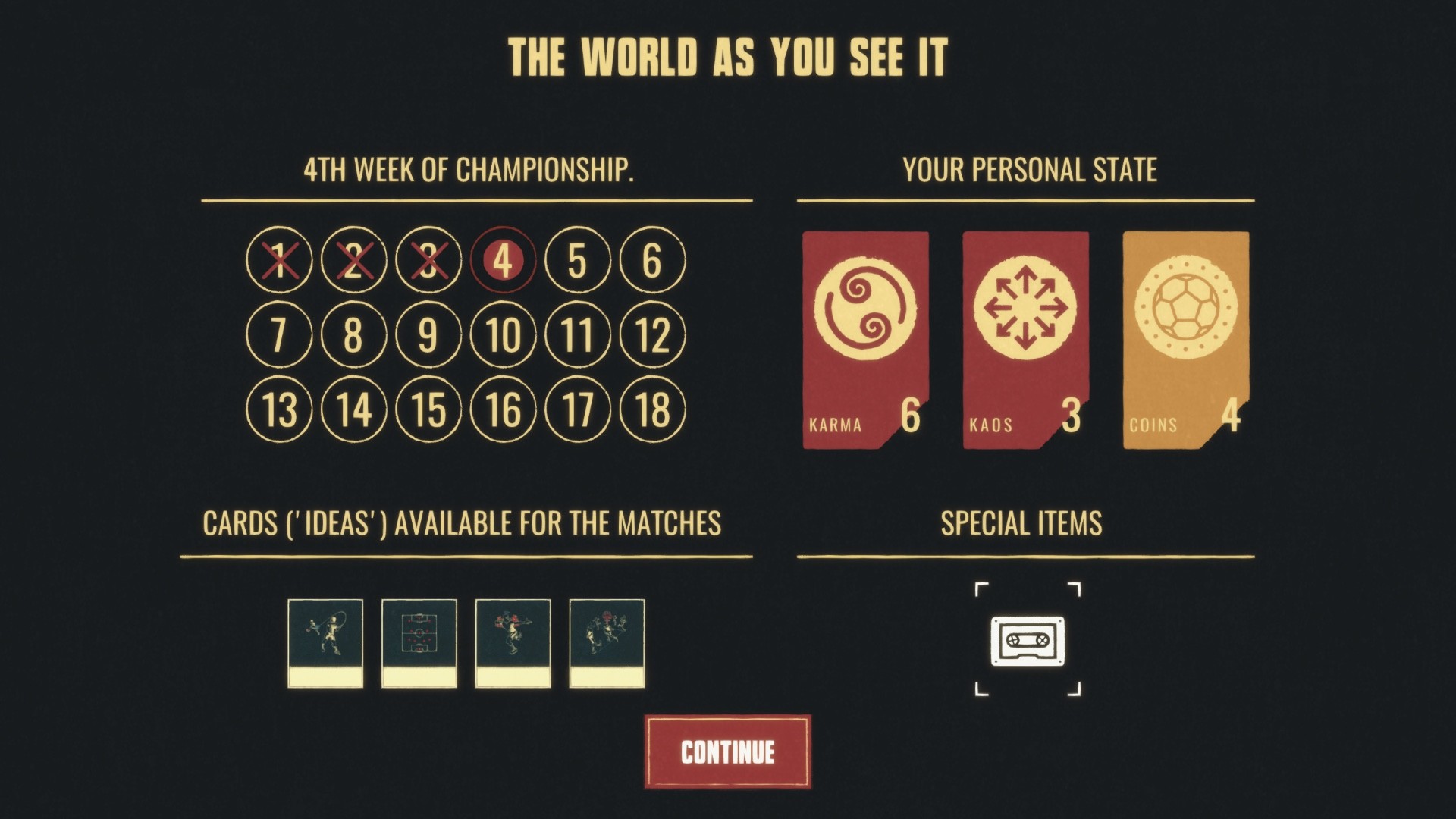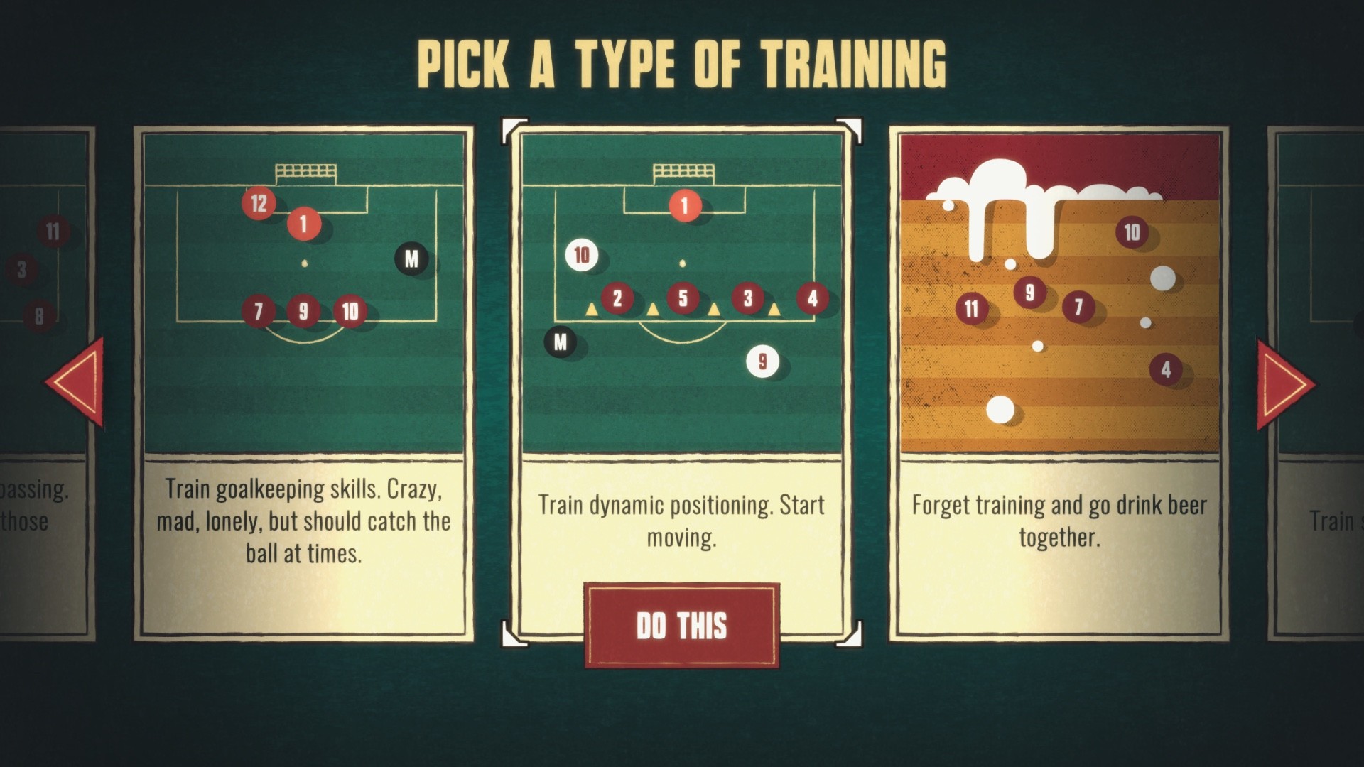 There is a story behind every goal. You're Rocco Galliano, the existentially troubled manager of a struggling football team. Train players, choose your own narrative, survive the drama, and play turn-based football matches via tactical cards and hard choices.