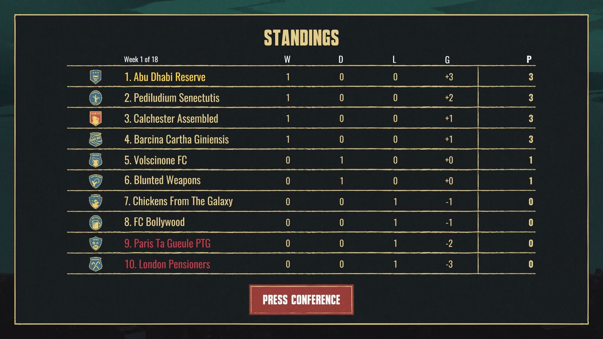 After the abrupt ending of your coaching career seven years ago, the hysterical attention of the press quickly faded. But struggling results by Calchester FC convinced Boris Aluminovitch, its billionaire president, to axe the previous beleaguered manager and give you a new chance.