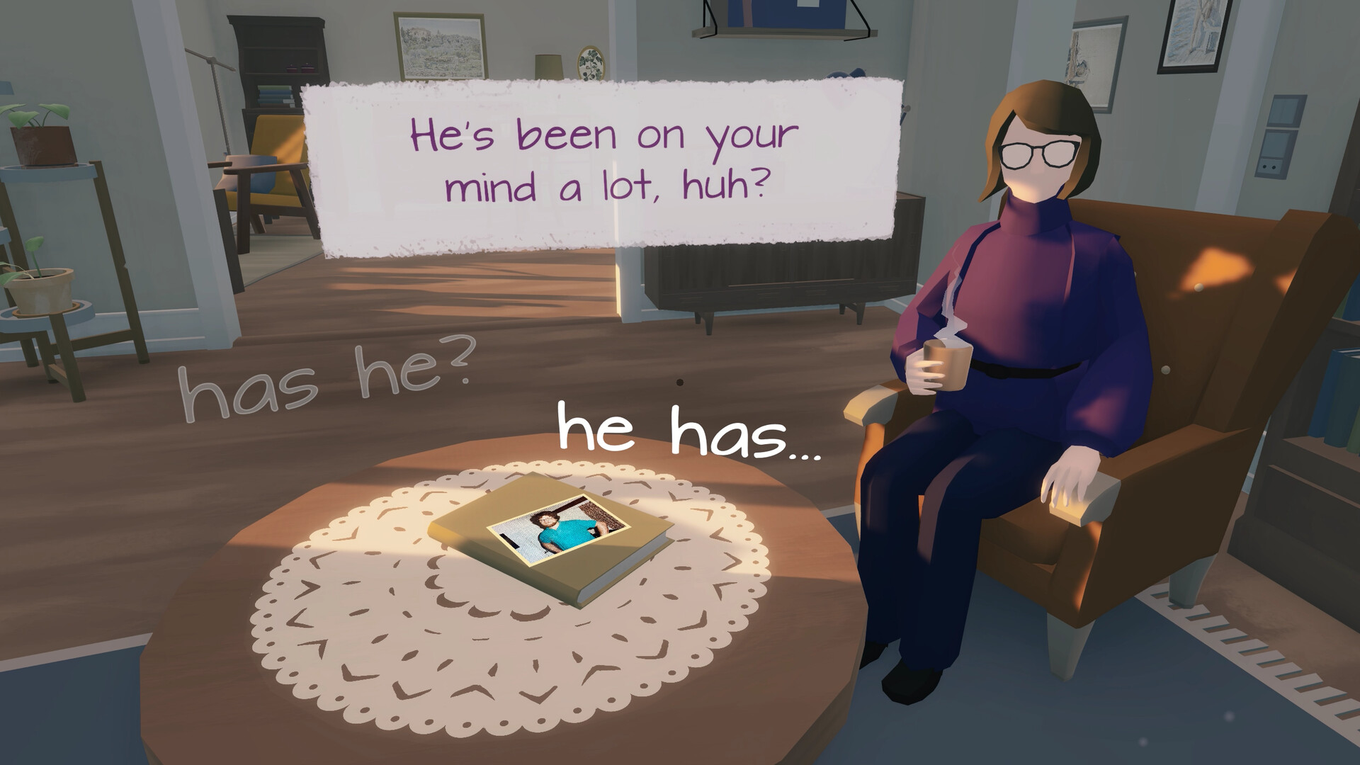 Inspired by personal stories. You play as Annie, an elderly woman whose memory is starting to betray her. Annie and her children cope with reversed caretaking roles as she moves from her long-time home. While her children clash over how to care for her, old memories of Annie’s long-dead brother start to emerge.