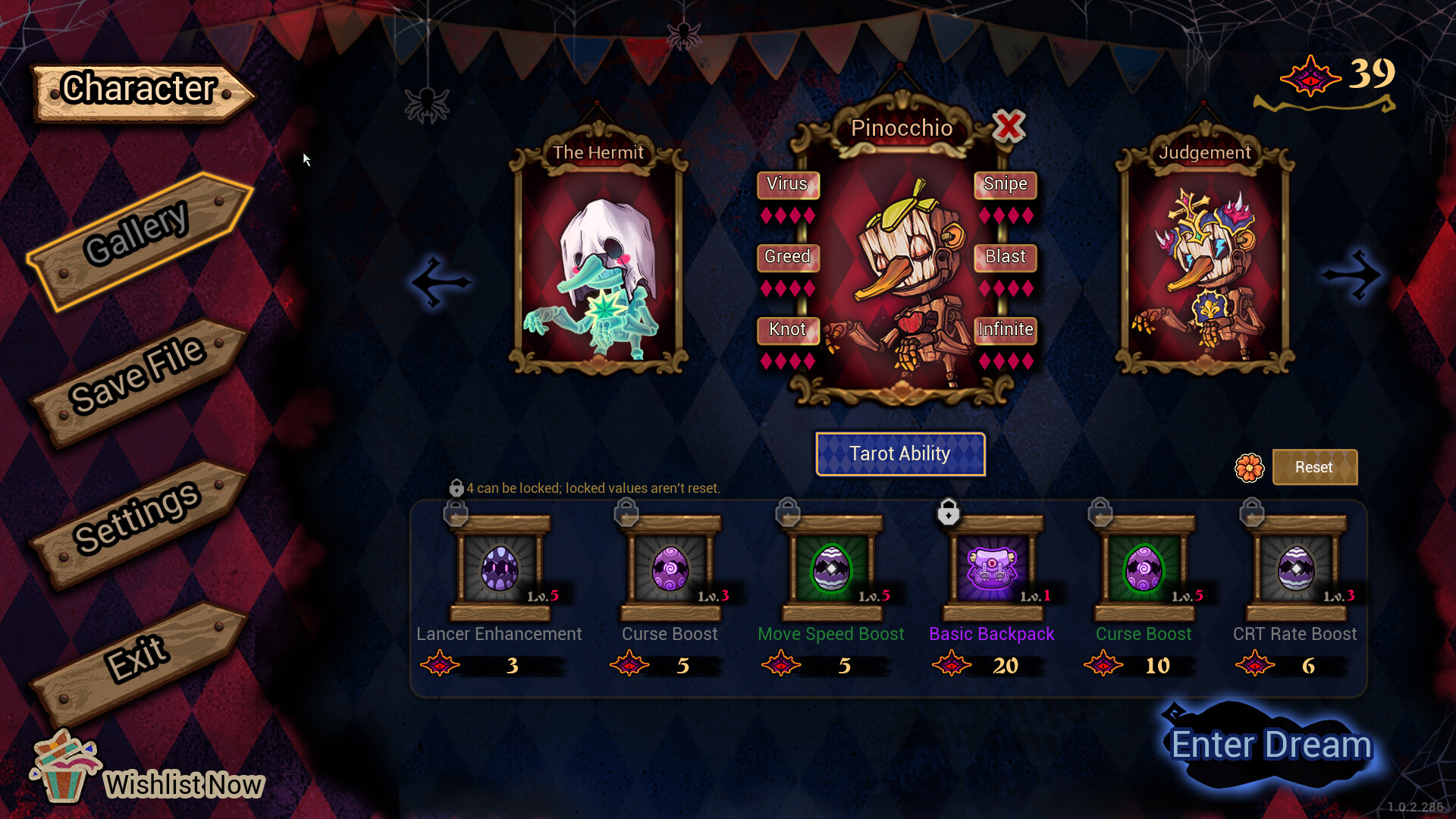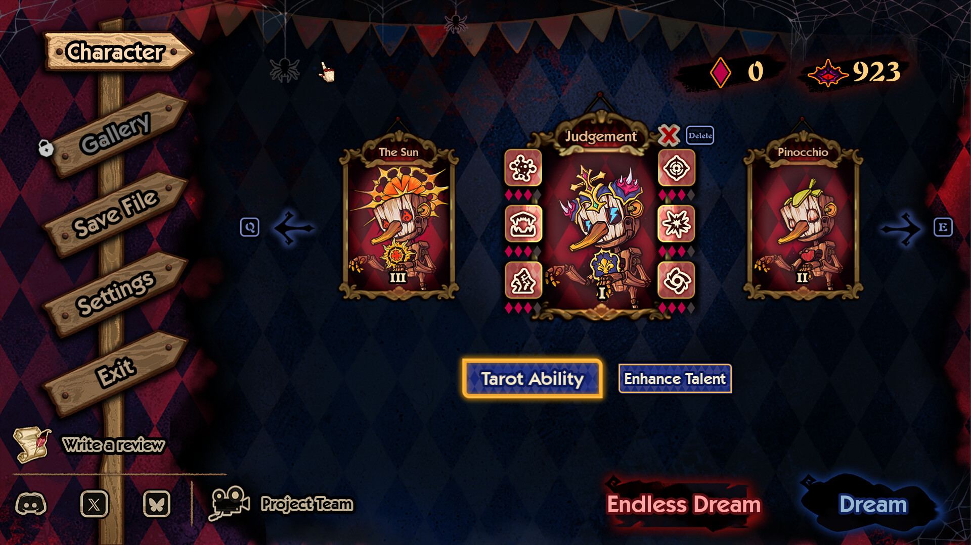 Successfully completing a Tarot Dream grants you a shard of its mysterious power. Once all shards are collected, Pinocchio transforms into a powerful Tarot Pinocchio with unique abilities. Combine this form with various Dream Eggs and talents to craft your own distinct playstyle.
