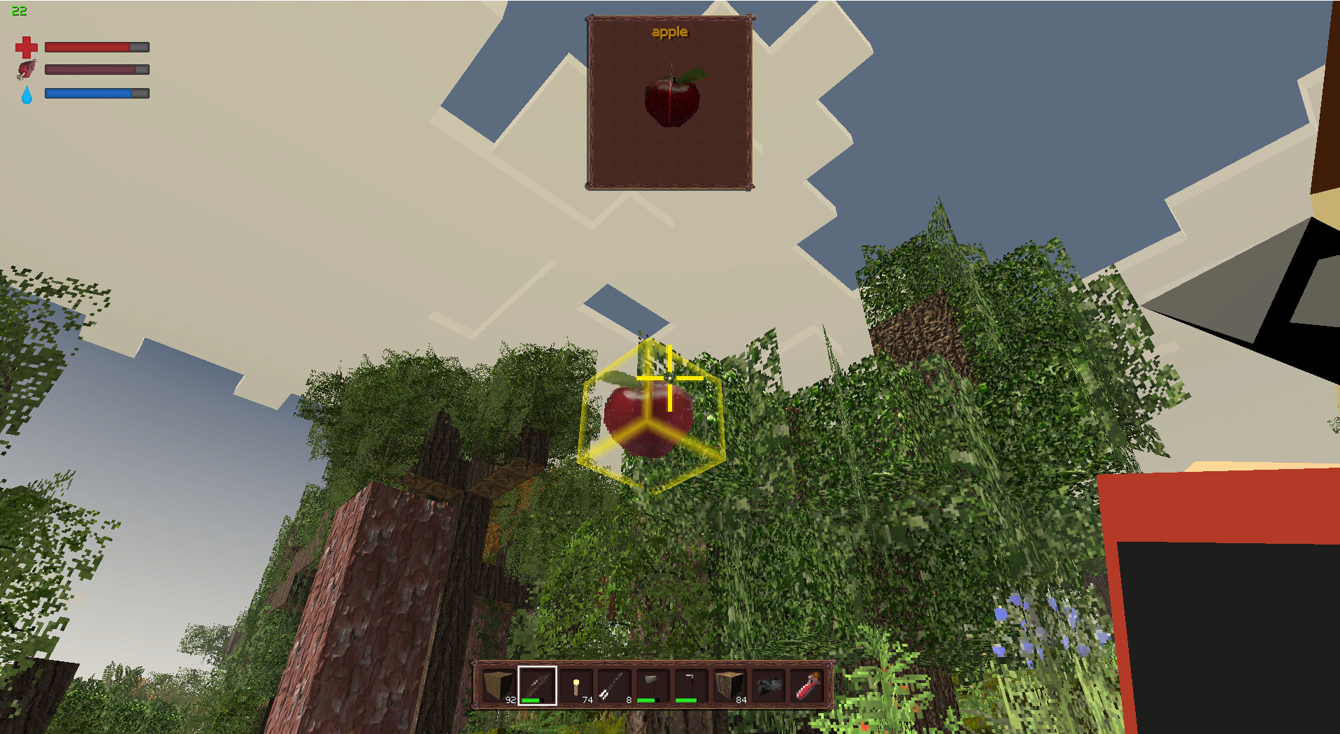 There is hunger and thirst, and you need to collect fruit in the wild, or hunt, farm, to survive.