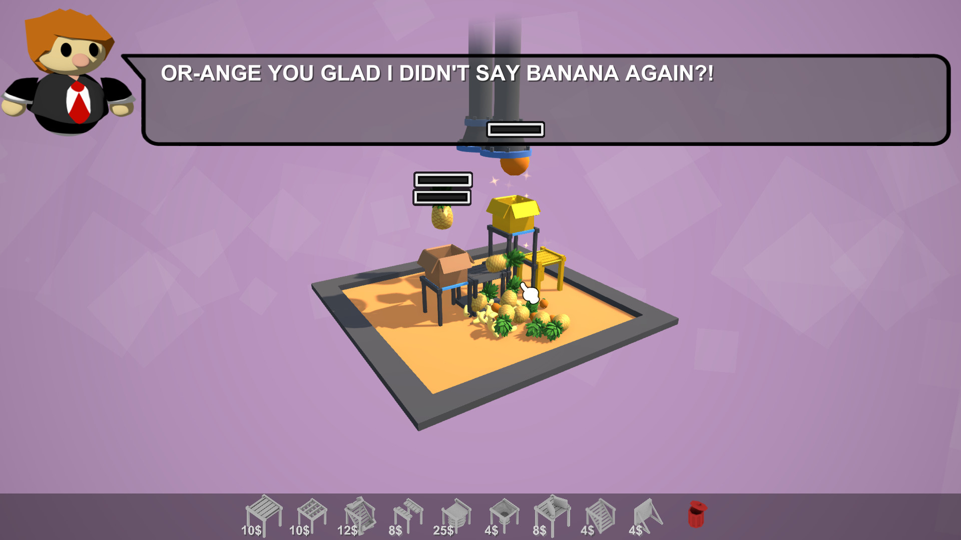 Fruit Factory contains 4 different worlds, each with their own unique puzzles and challenges. With over 40 exciting levels, the possibilities are endless on how you build the factory! Choose from different machines to move, bounce, and sort the fruit that will be, quite literally, thrown your way! Each machine and fruit comes with its own super unique and silly mechanics!
