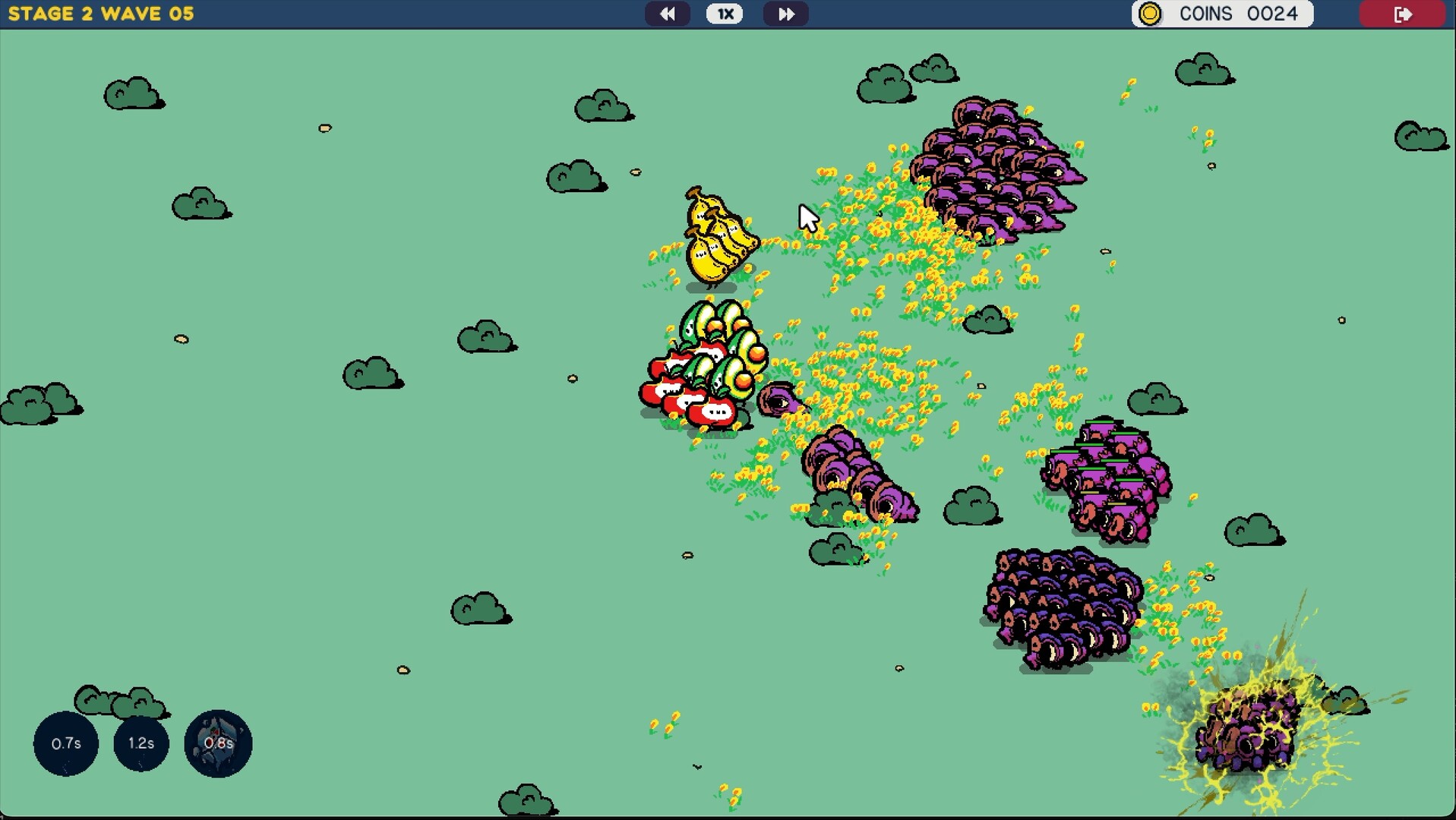 Each wave gets tougher, but you’ll earn coins along the way. Use them to grab better cards, experiment with different combos, and see just how far your fruity army can go.