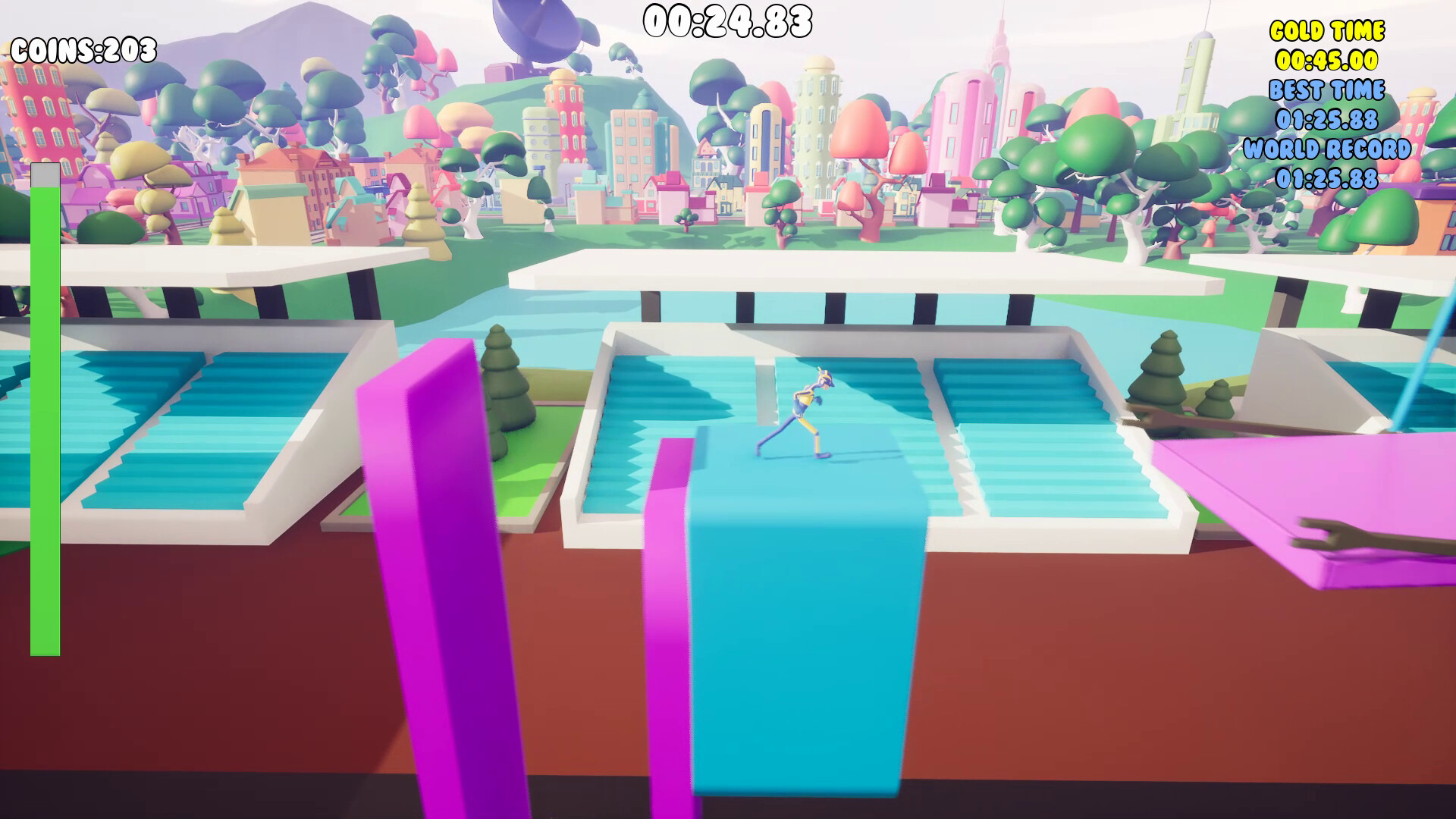 The game's controls are designed to be intuitive and responsive, giving players a sense of agility and precision as they navigate the courses. You can run, sprint to gain speed, slide under obstacles, leap over gaps, and even master the art of wall scaling by deftly jumping back and forth between surfaces. These mechanics not only add depth to the gameplay but also allow for a wide range of movements that make each attempt at a course a thrilling and unique experience. Mastery of these controls is key to making swift progress, avoiding setbacks, and ultimately dominating the leaderboards with grace and style.