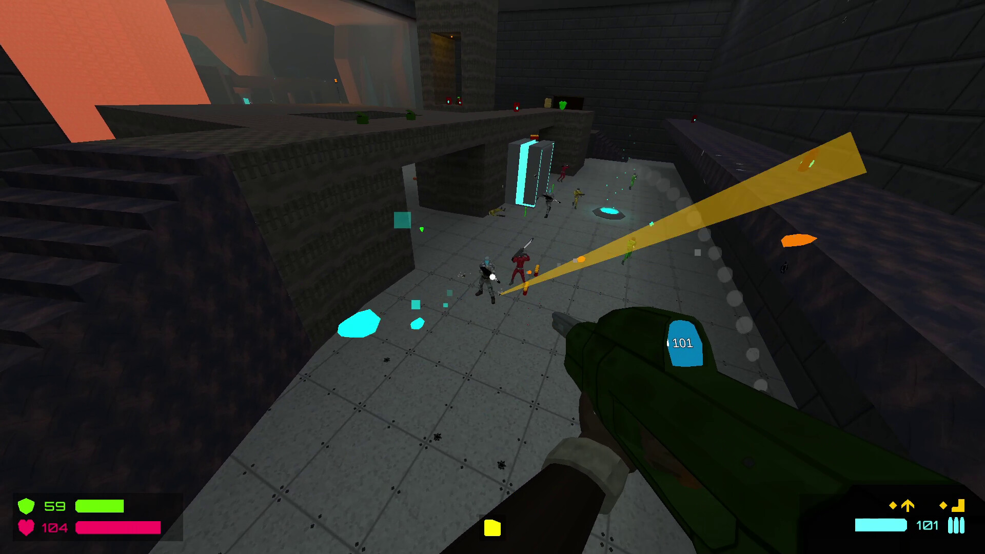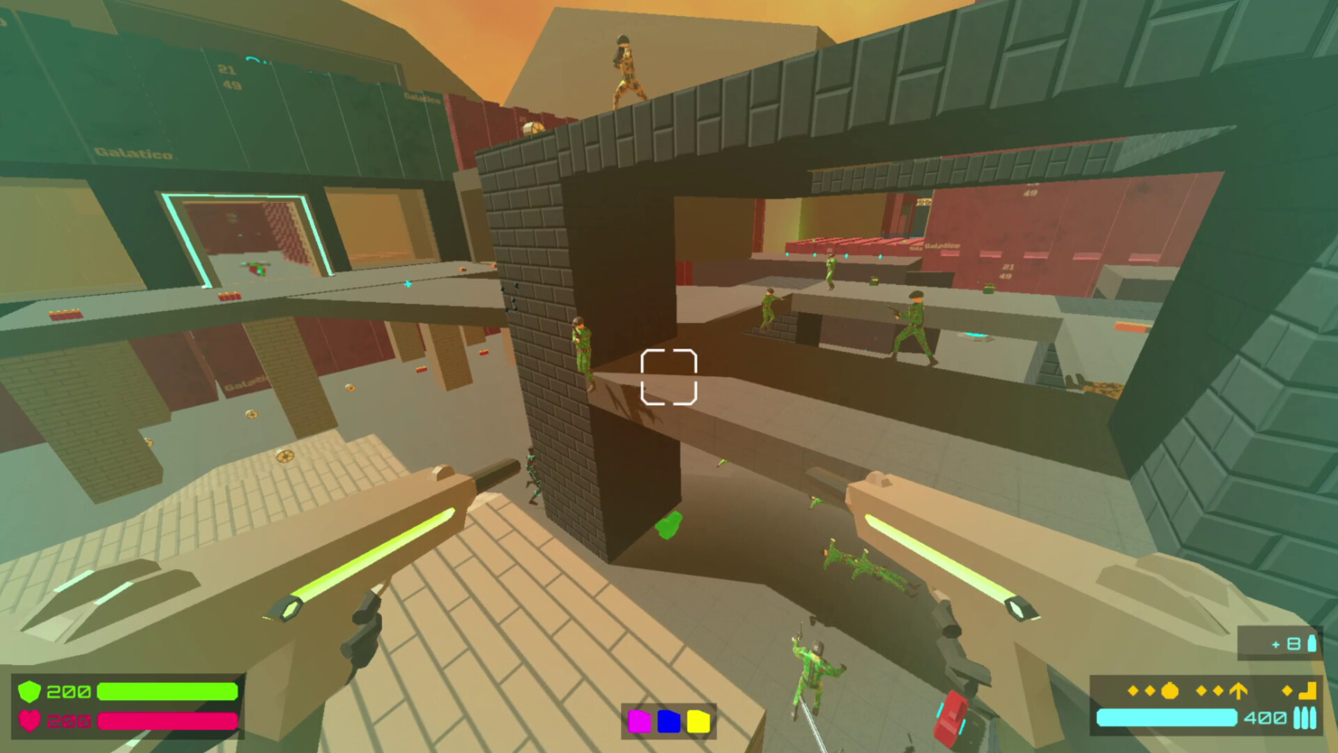 The powerful mega-corporation, Galatico, controls the universe’s premier mode of transportation: portals. In this fast paced, first-person retro shooter set in the far future, you will battle your way through relentless Guards, advanced Sentries, formidable Generals, and fearsome Hunters to dismantle the corporation’s iron grip on the most advanced tech known.