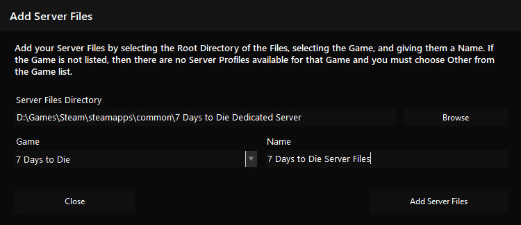 Keep all your Server Files in one place for easy management! Game Server Toolbox allows you to add Server File Locations so you can easily create servers using them.