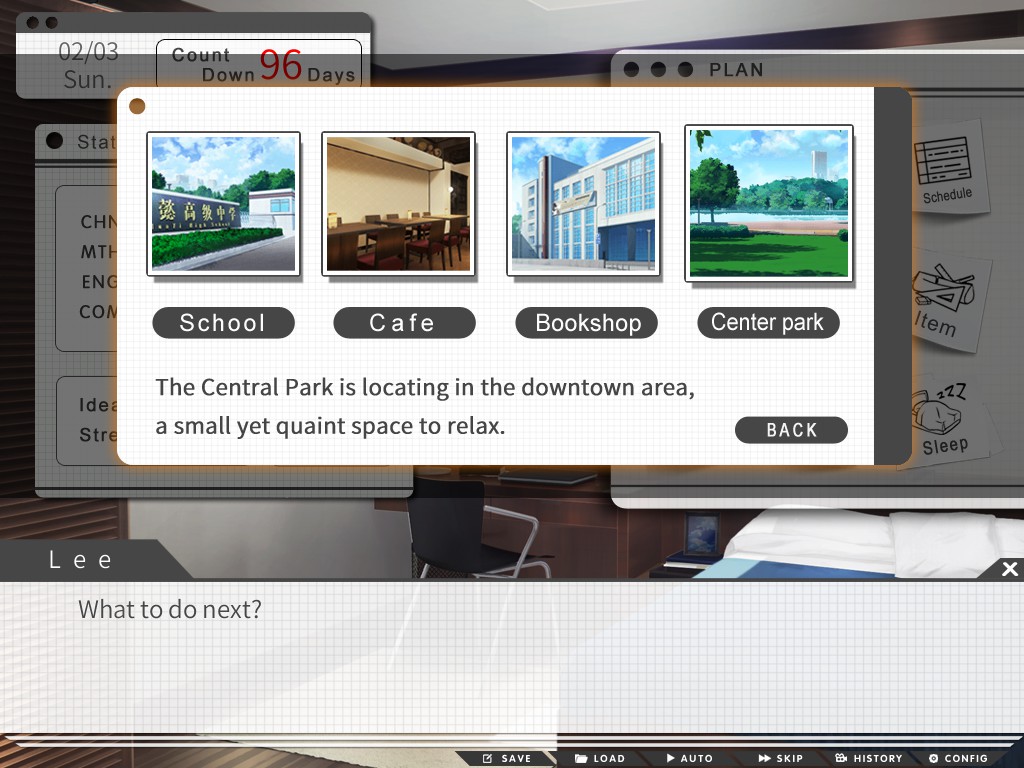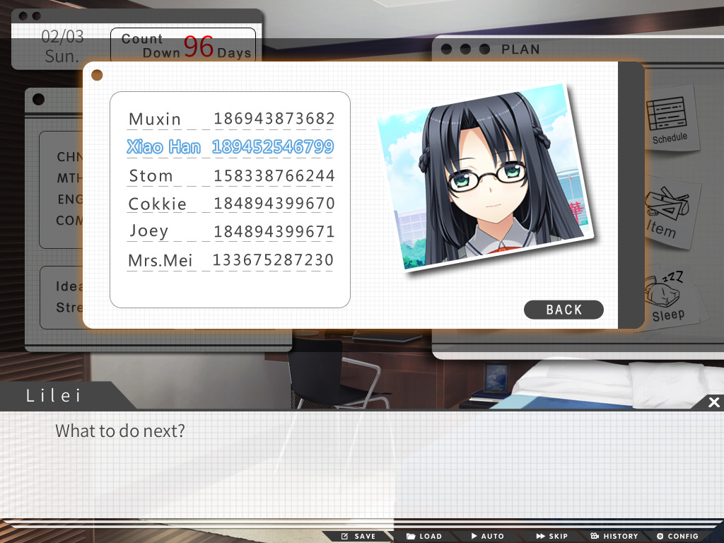 This is a dating simulation game based on Chinese students' real life. You can have romantic relationship with classmates, but remember that you have just 100 days while preparing for "Gaokao".
