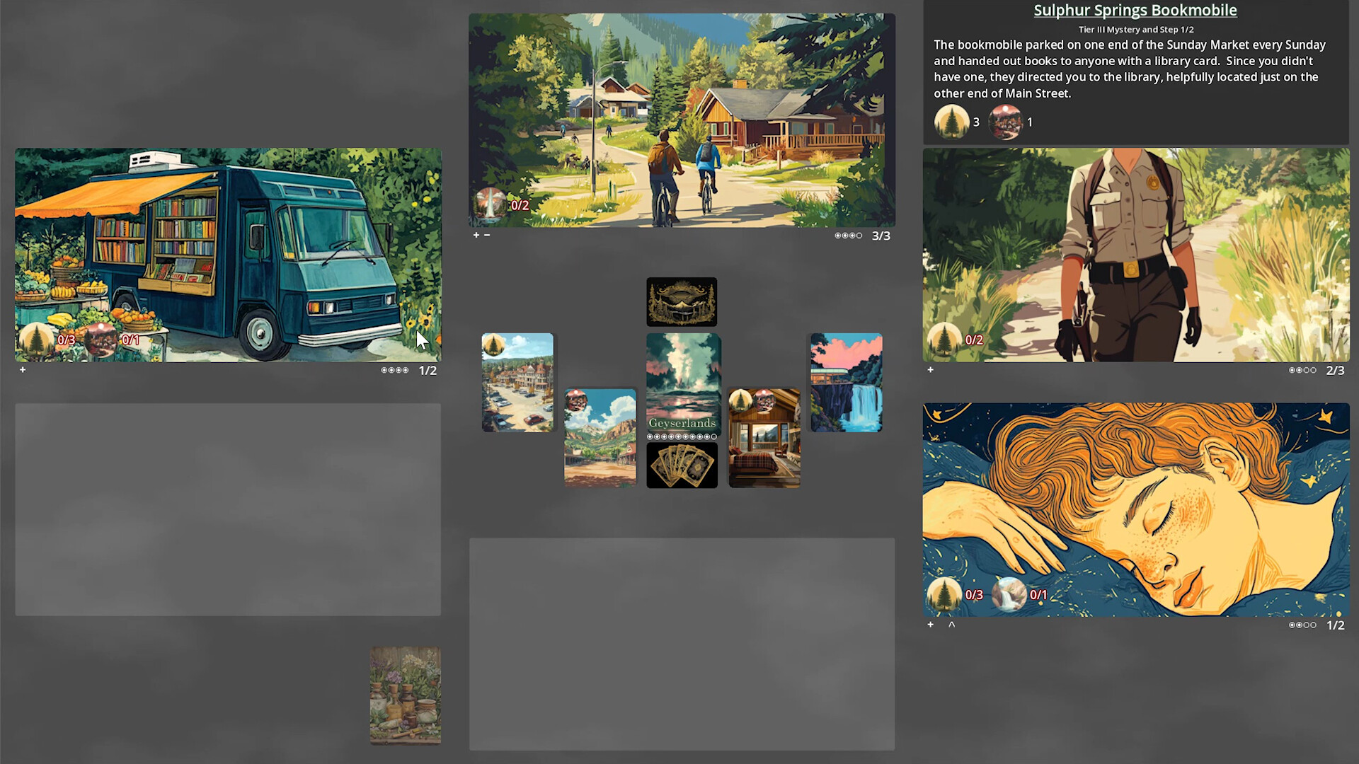 Use the cards you draw each turn to solve some of Geyserlands' hundreds of mysteries.