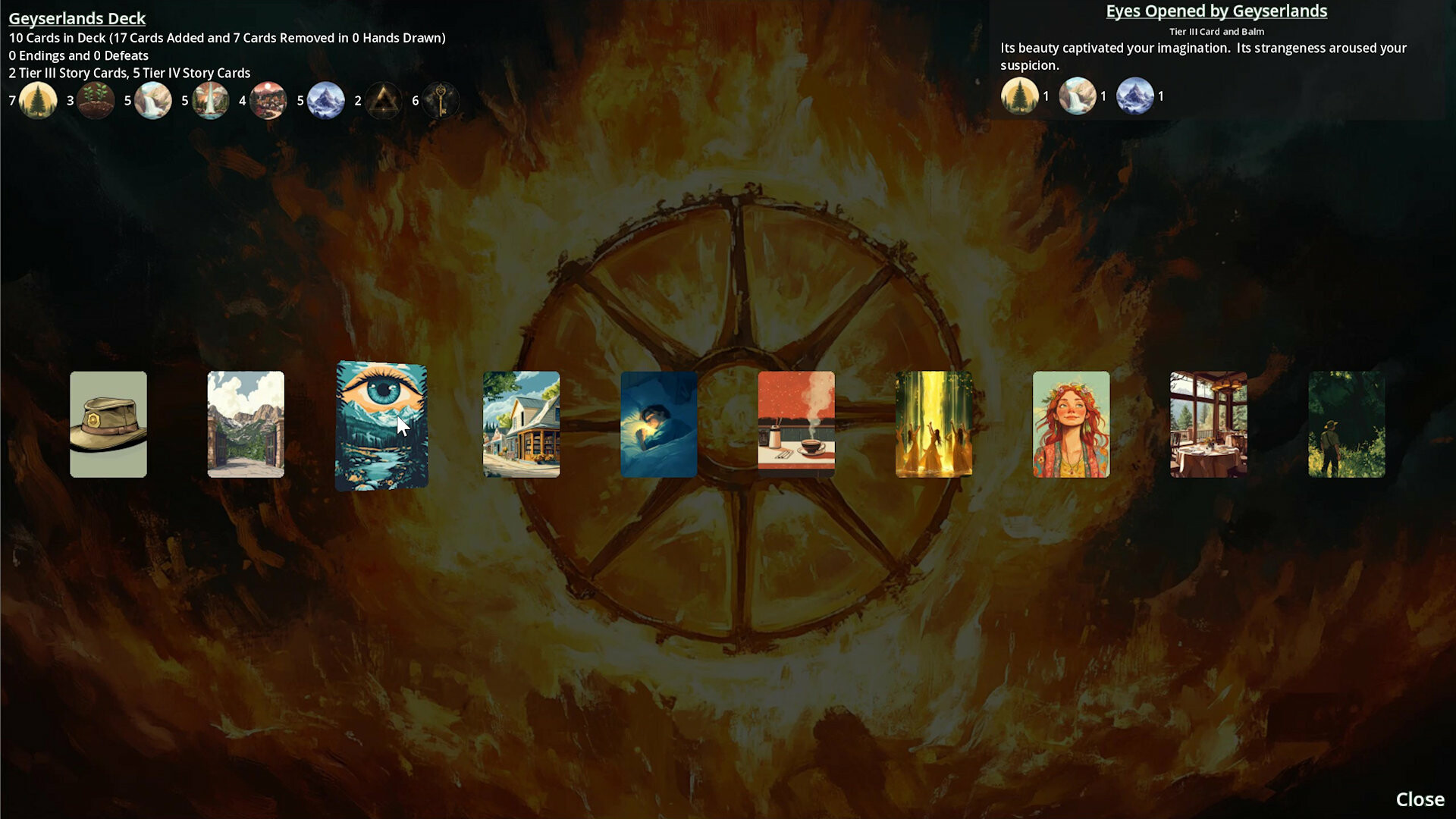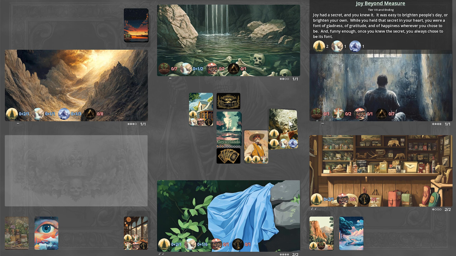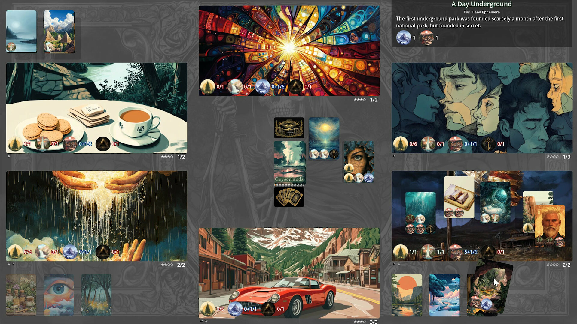 Geyserlands is a deck-building game of modern otherworldly mystery. Gain new cards and upgrade your deck as you explore the mystery of Geyserlands. Unlock secret powers and gain special advantages. How will your story end in Geyserlands?