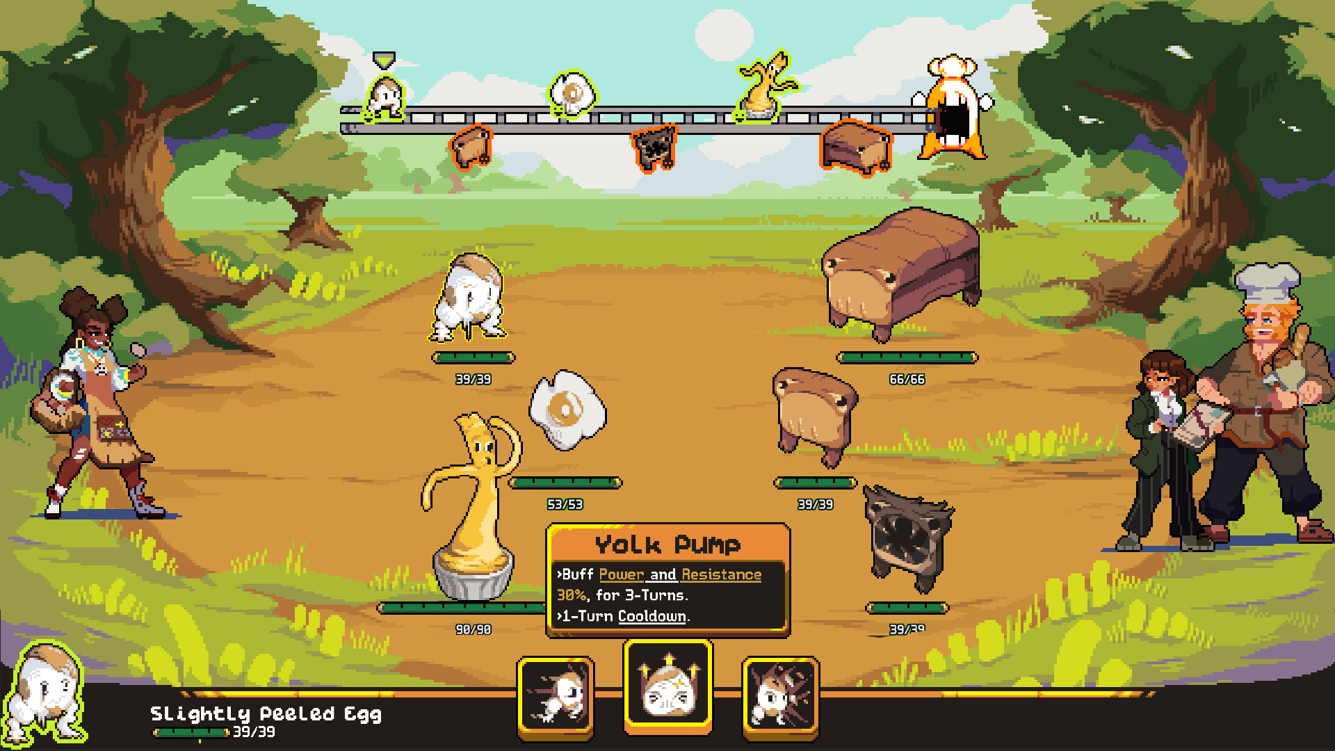Chop, boil, bake and fry your ingredients into fighting shape in a snappy series of bite-sized minigames. Each round is a chance to add to your team or evolve your existing fighters into new, more powerful evolutions!