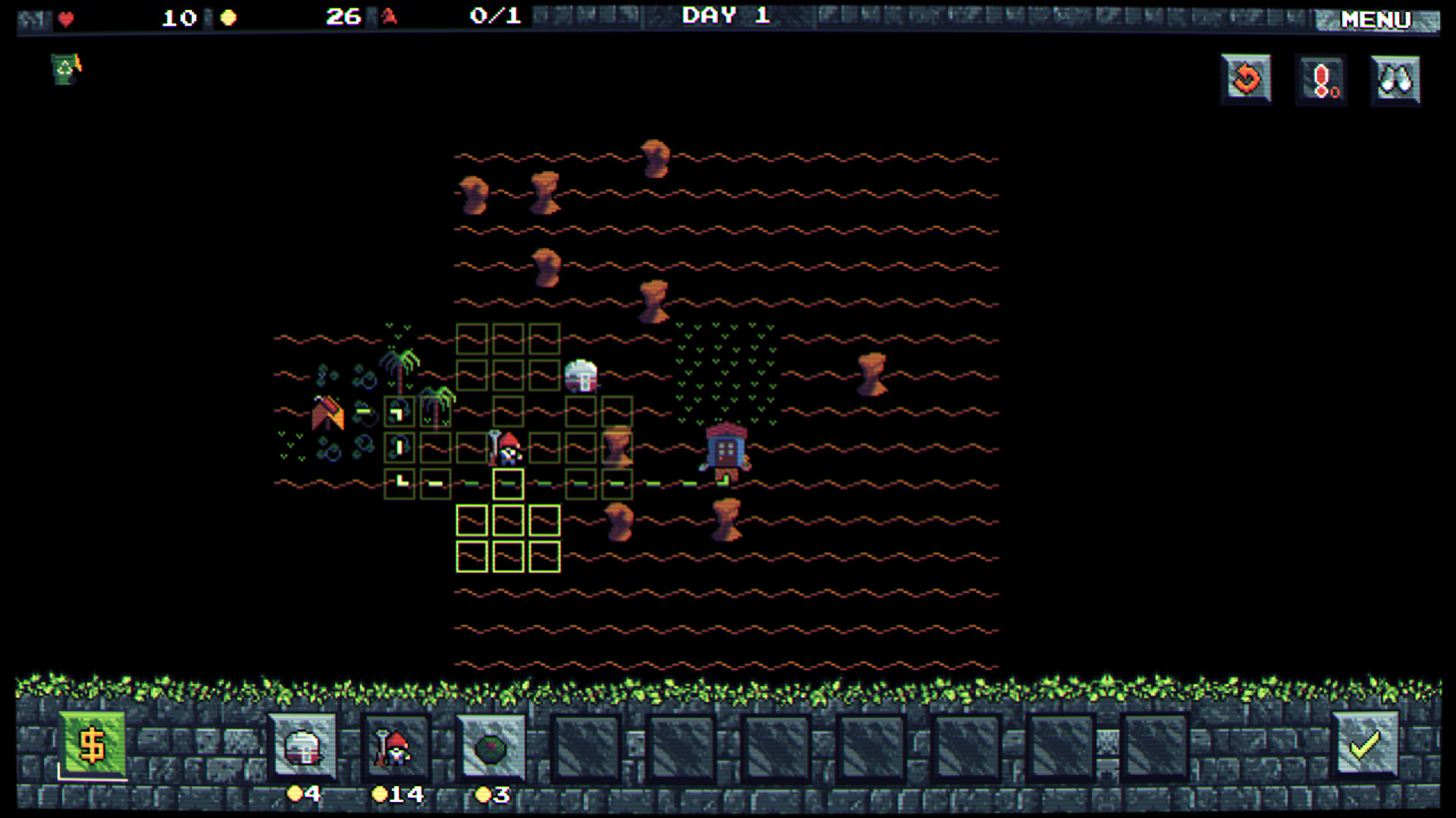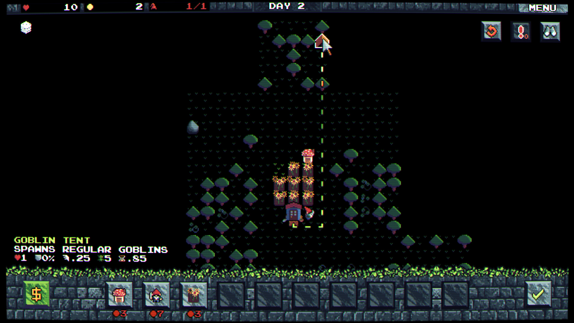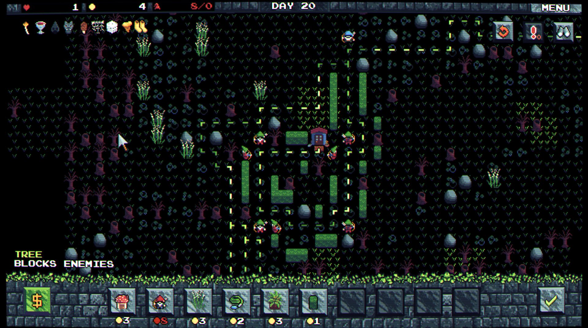 A turn-based tower defense with deep roguelike progression, set in ever-expanding, procedurally generated biomes. Build, farm and defend your village as you push deeper into goblin-infested territory. Unlock powerful upgrades and craft your environment to survive the endless goblin horde.