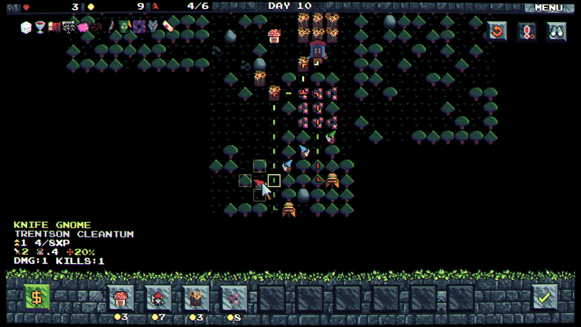 Use your gnomes to defend your crops from the goblins on a map that expands every day. On your turn, position your gnomes, prepare your defenses and grow your economy. Test your strategy against endless, procedurally generated encounters and survive long enough to face the goblin king.