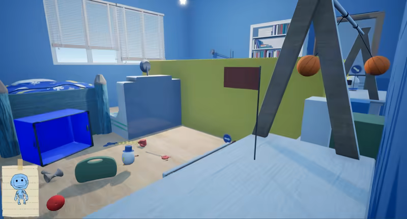 A game in which Pico goes back home using toys reminiscent of a child's playroom, and the components of the house and room