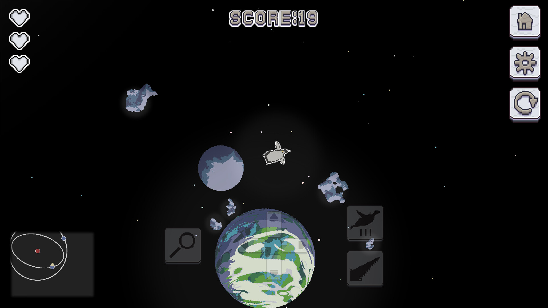 Jump, black holes, various satellites and planets and stars.