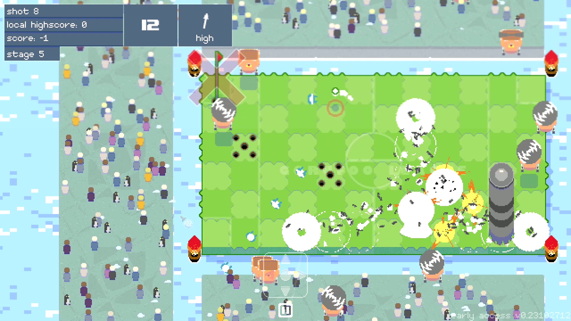 "Score Attack" mode - The main objective of the game is to sink the ball. Score as many holes as you can in the provided time span. Simple as it gets! - As you score, the arena provides the player with the opportunity to up the stakes and prolong the game time - Additional rules and hazards are planned to be implemented as development goes