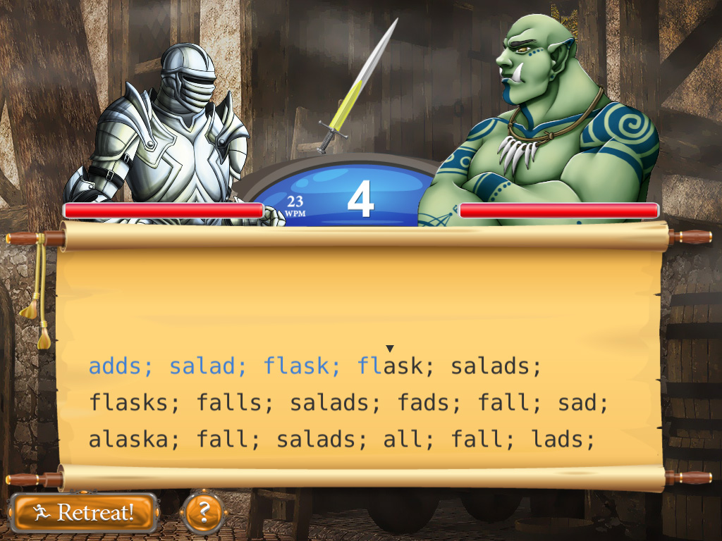 Learn how to type or type faster with this fantasy-science-fiction game. As a brave knight of the realm, you venture on a quest to save your kingdom from a fire-breathing dragon. Role-playing game with 48 levels and 500 drills guarantees you will master typing and win at school, work, and gaming! All ages.