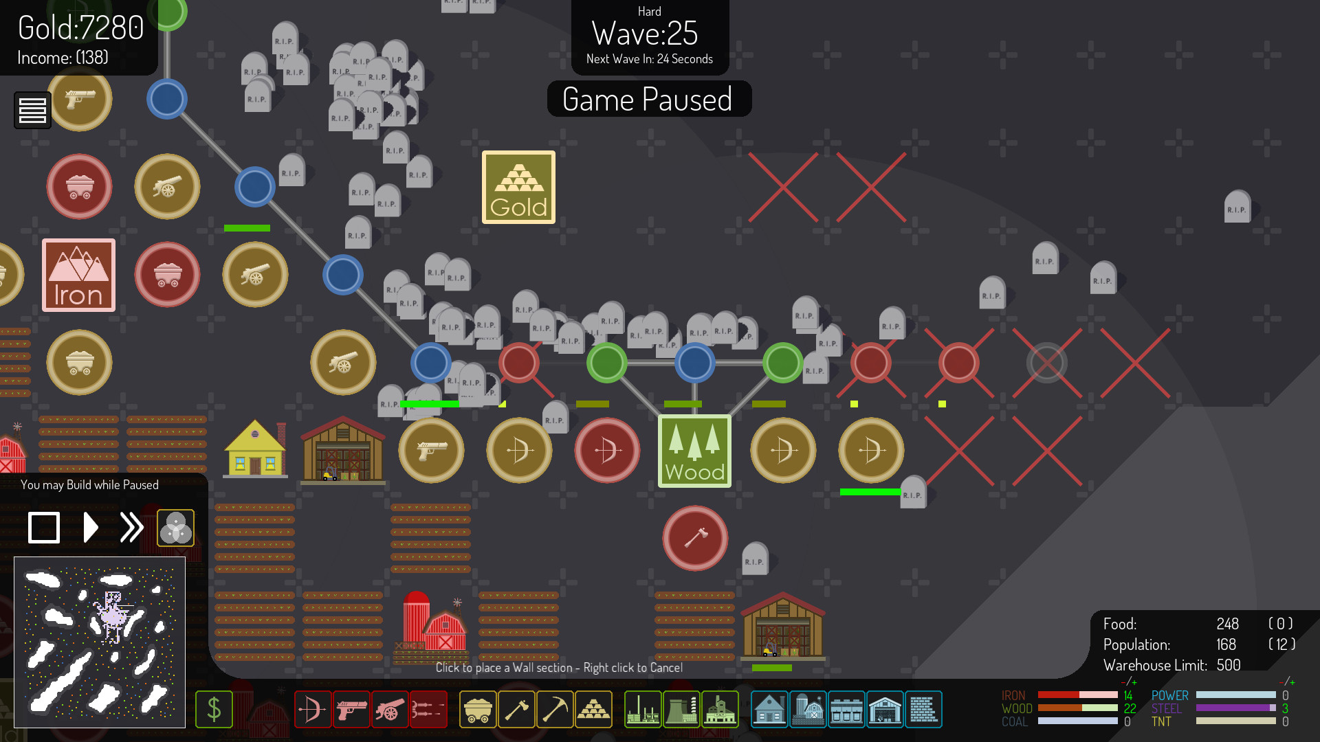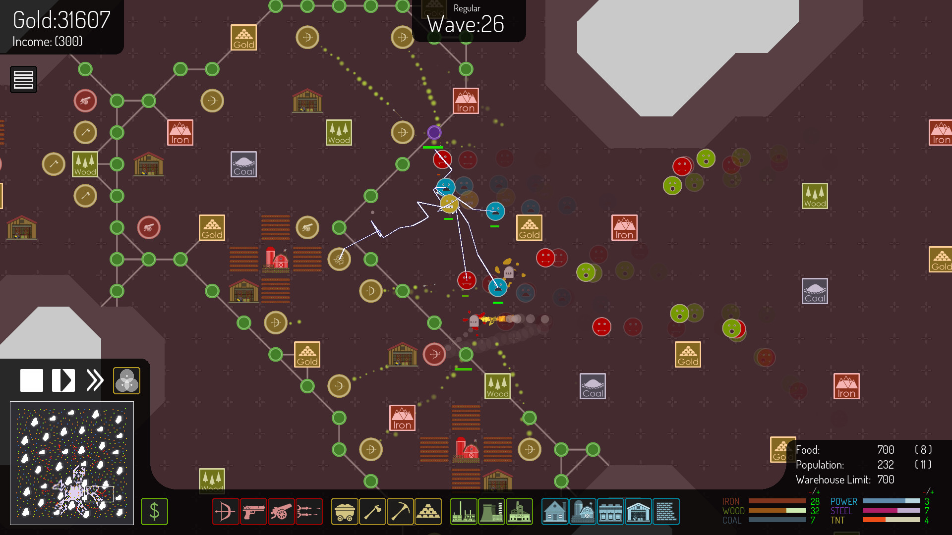 Building requires Gold and Resources, but Resources also serve as Tower Ammunition, each Tower uses a different type and upgraded Towers use more- in other words; keep an eye on Managing those Resources, you don’t want to run out during an attack!Survival Mode-