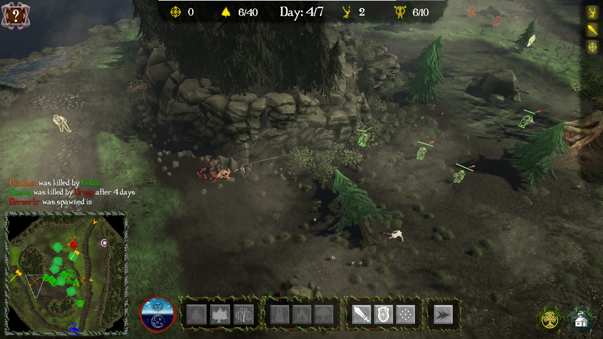 In this Dark-Fantasy, RTS game, you play the role of a Forest Deity protecting your Grove against an onslaught of loggers, warriors and poachers. Use your powers to grow trees, summon guardians, set traps, and employ magic to defend, and eventually conquer your human oppressors.
