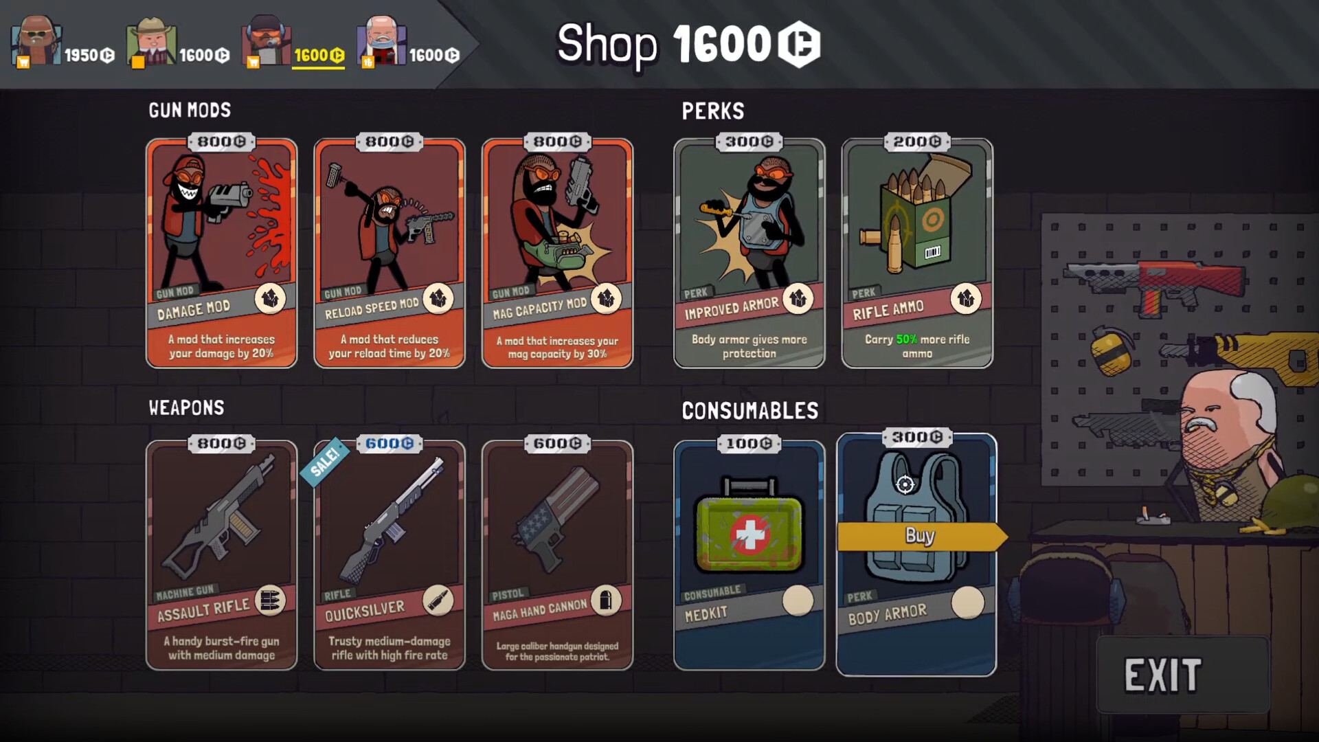 Player upgrades are at the heart of the Guntouchables and crucial to help you keep up with the scaling difficulty. Combine common and class-specific perks and abilities to form powerful and creative builds.