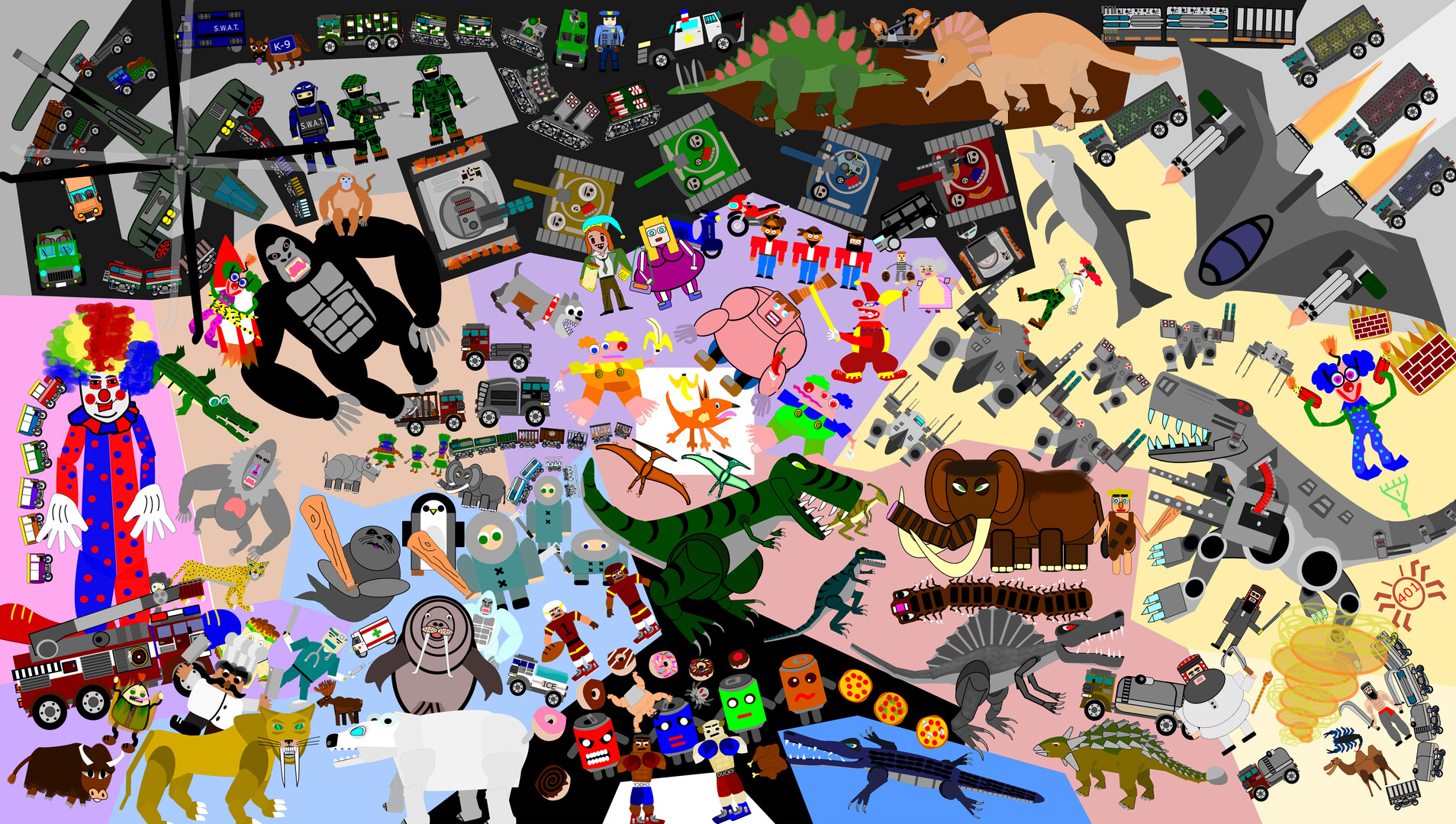 Survive mazes packed with wacky enemies, from homeless bums and clowns to club-wielding seals, rampaging gorillas, and Mechasaurus Rex, all while dodging oncoming traffic and relying on a less-than-practical defense to avoid disaster at every turn.