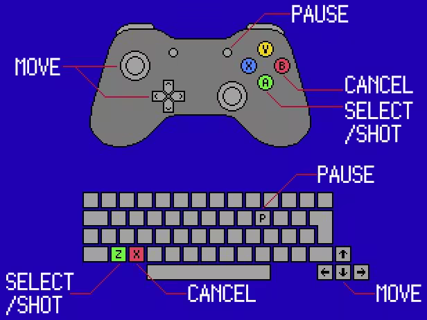 A 2D vertical scrolling simple shooter with retro-style pixel art.