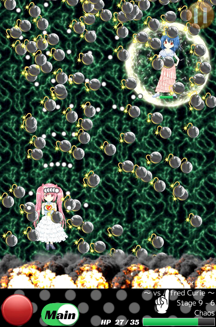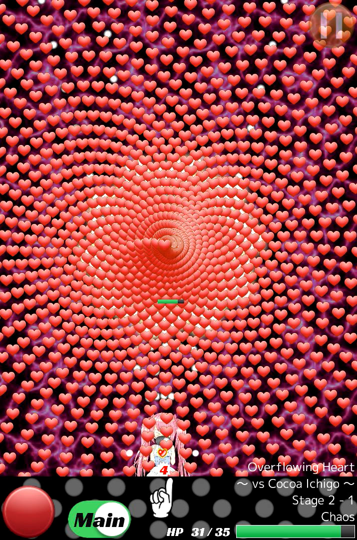 If an enemy bullet or enemy hits the player's heart, the player will be damaged, and if HP is 0, the stage will fail (game over).