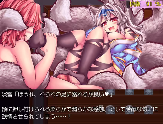 In this competition, your opponent is the captivating nine-tailed fox. With exceptional sensual skills and alluring temptations, she aims to lead the protagonist astray. From breast fondling, kissing, foot torment, and real sexual encounters to using her heavy and fluffy tail for torment and seduction, as well as employing special bubble abilities for torment (such as sticky soap bubble attacks, entrapping you in a large motionless bubble, and more)!