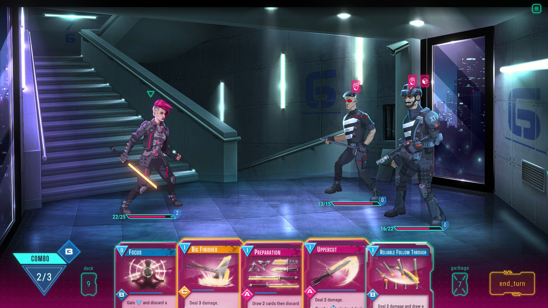 If stealth is not an option, fight guards and automated security systems in tactical card-based battles. Instead of traditional skill trees, customize your character by assembling a deck of cards tailored to your chosen strategy.