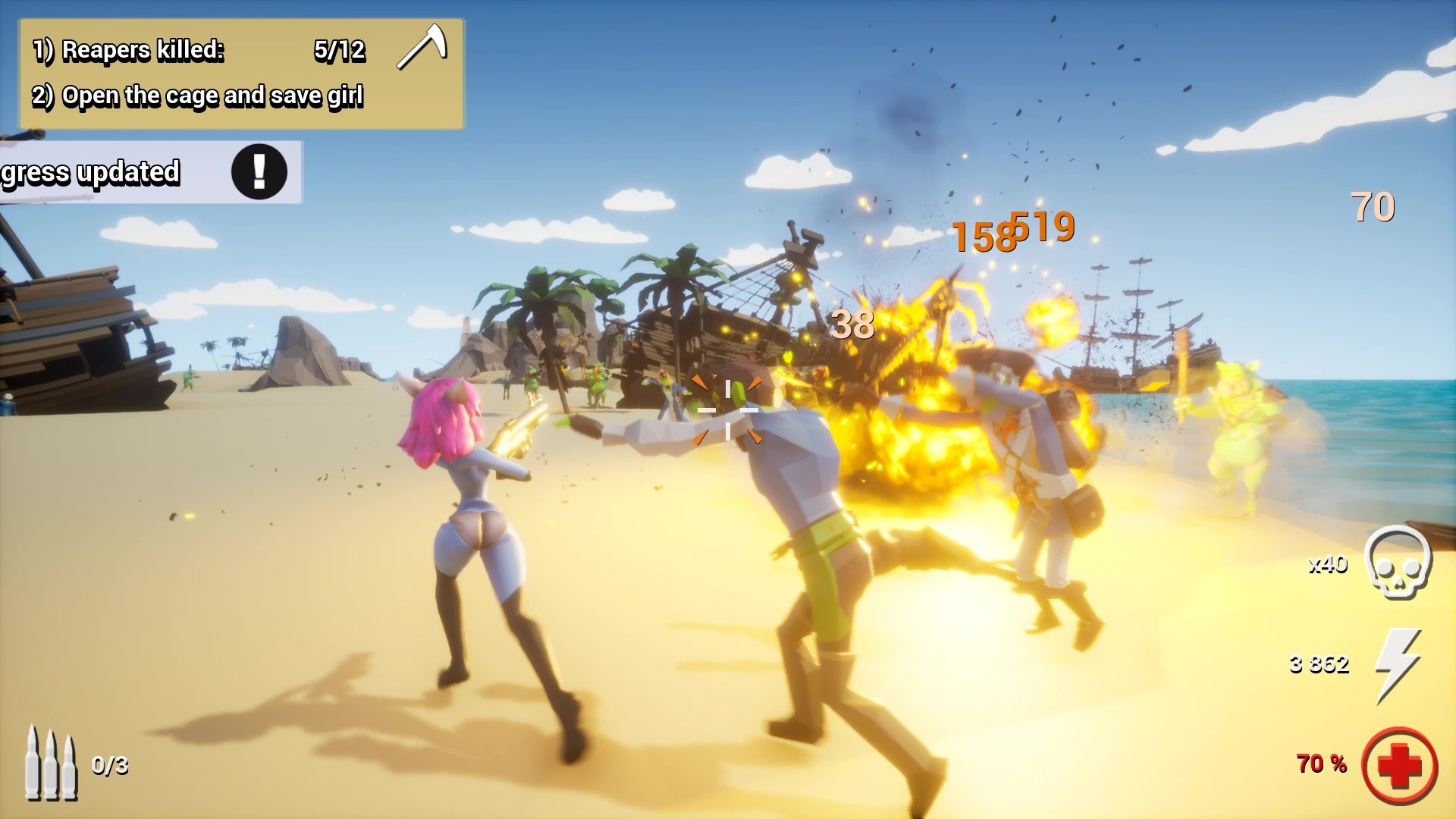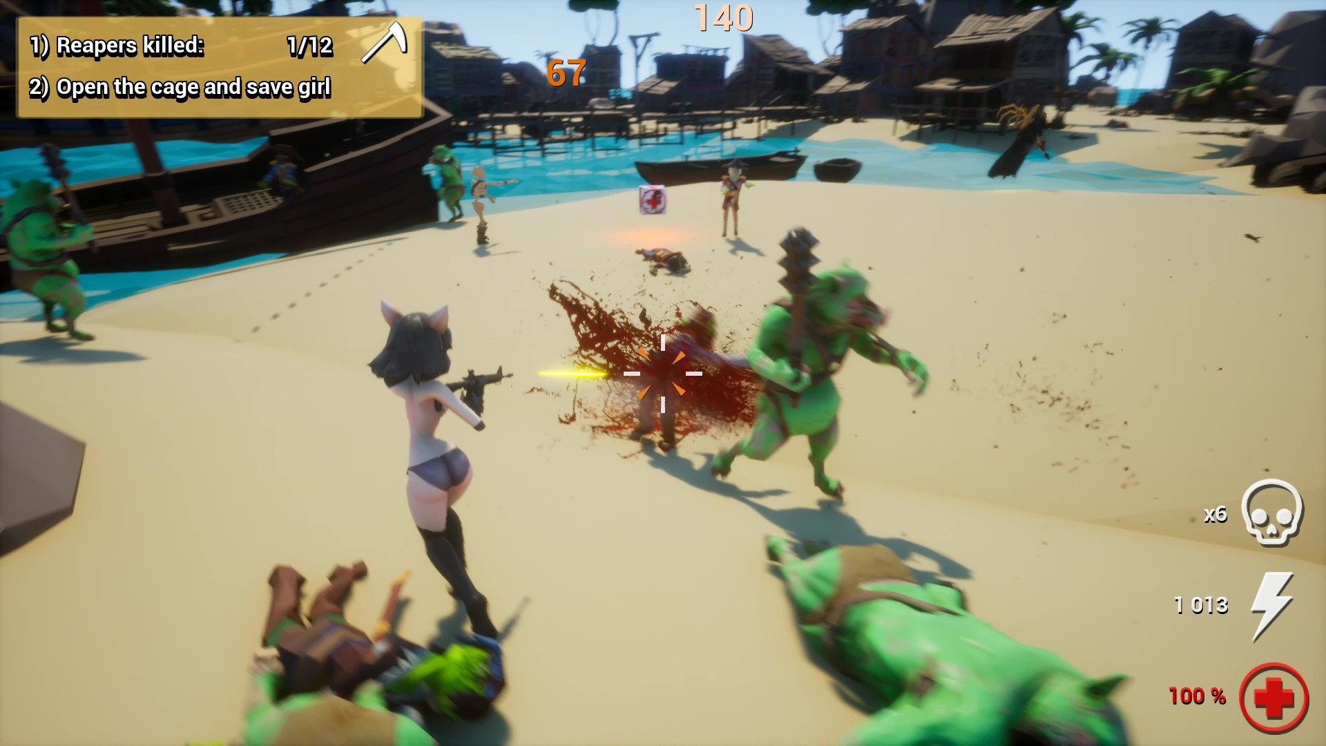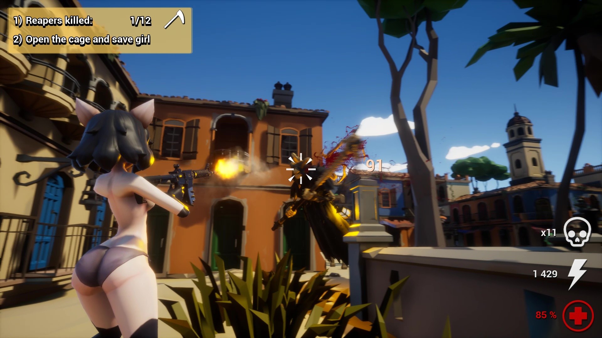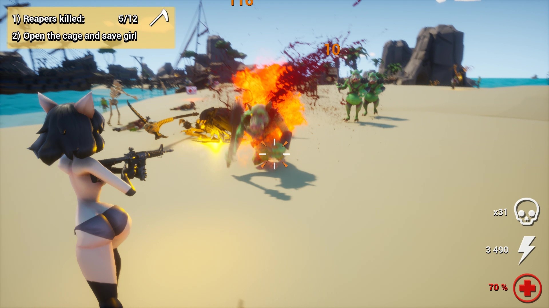 Sometimes a little zombie killing and demon slaying is all you need, but a dash of naughty flavor to spice things up certainly can’t hurt, right? In Hentai vs. Evil, demons have invaded the city, the suburbs and even the beach, turning the residents into flesh-eating zombies and throwing cute girls into cages. It’s time to stop the madness! Rescue those girls, have them join your ranks as you take down the source of evil in a rain of bullets and look good doing it!