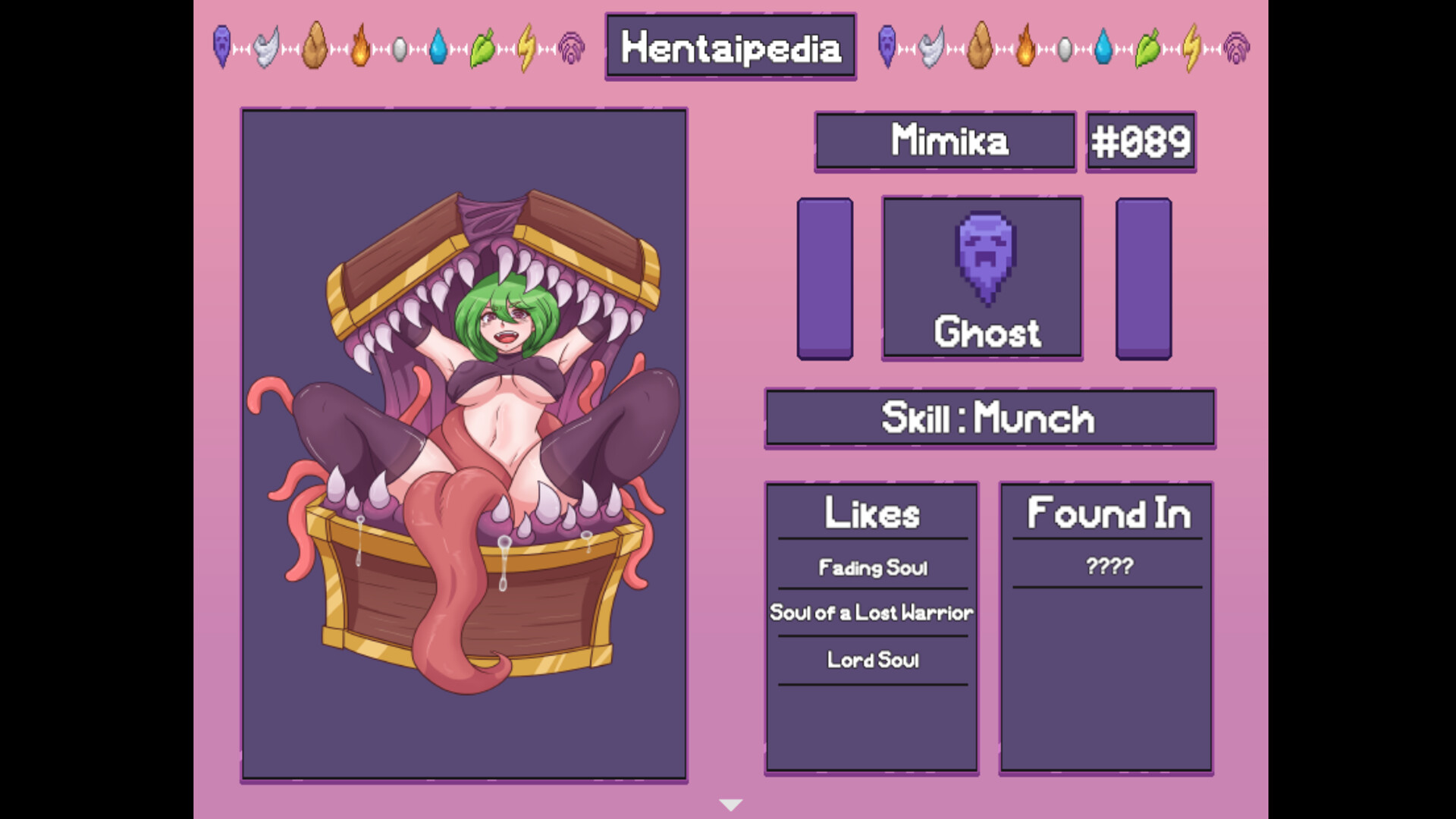 Explore the world to encounter all different types of Hentaimon! Each one of them have their own abillities, traits, interests, personal quest and much more. For now we just have a few of them unlocked, but as the development progresses more and more Hentaimons will be added to the roster!