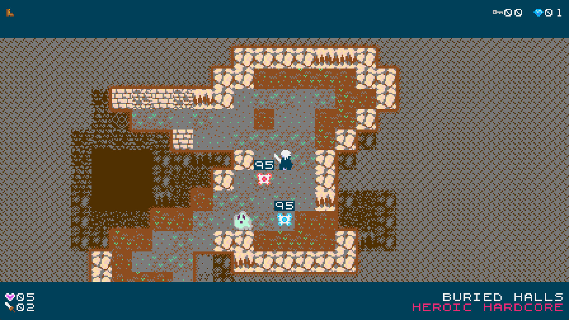 The controls are extremely simple - at its core, you'll adventure around the world using only four directional inputs. Arrow keys, WSAD, or a gamepad are some options. Enemies only move when you do- so strategy is more important than reflexes. One of the design objectives was to take the simplest gameplay we could, and see how much we could create with it. And the answer turned out to be quite a lot. Hero's Spirit was developed over quite a few years, and saw several revisions and updates along the way. To say that its special to us, as developers, would be an incredible understatement- it continues to be a beloved passion project of ours.