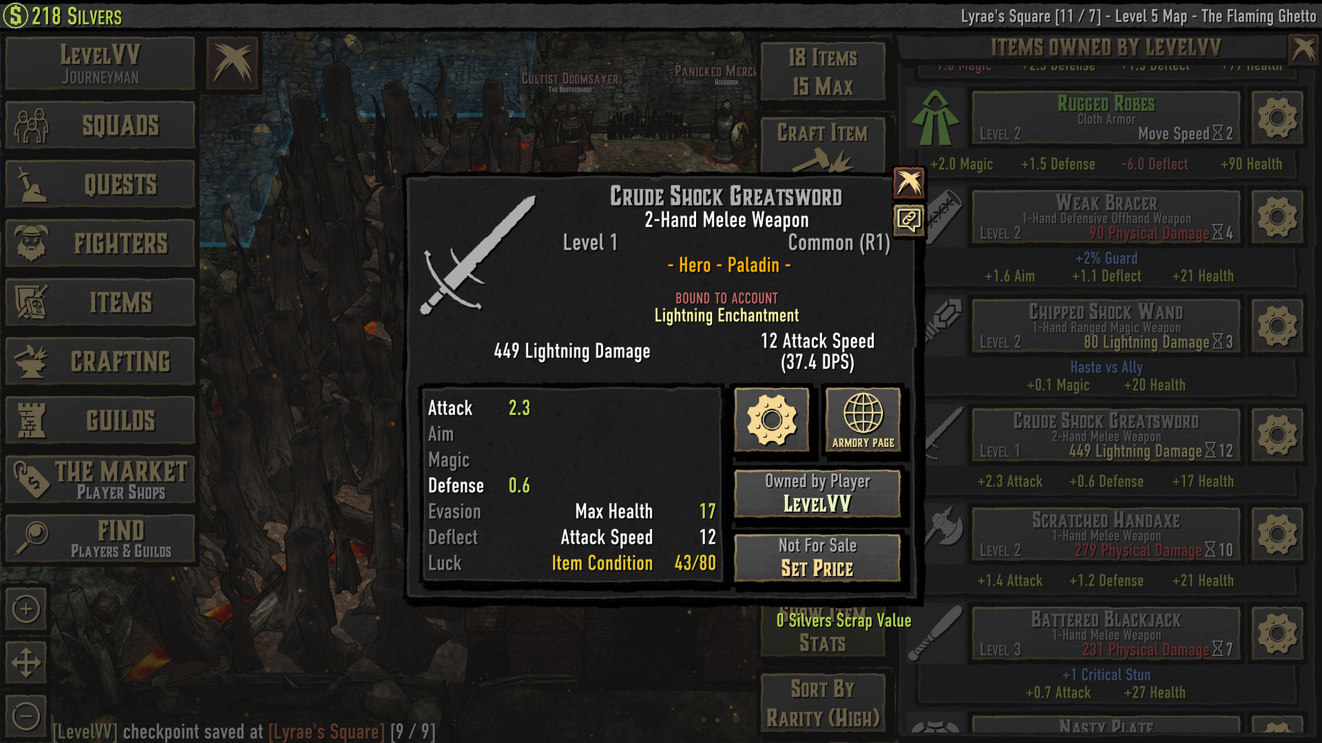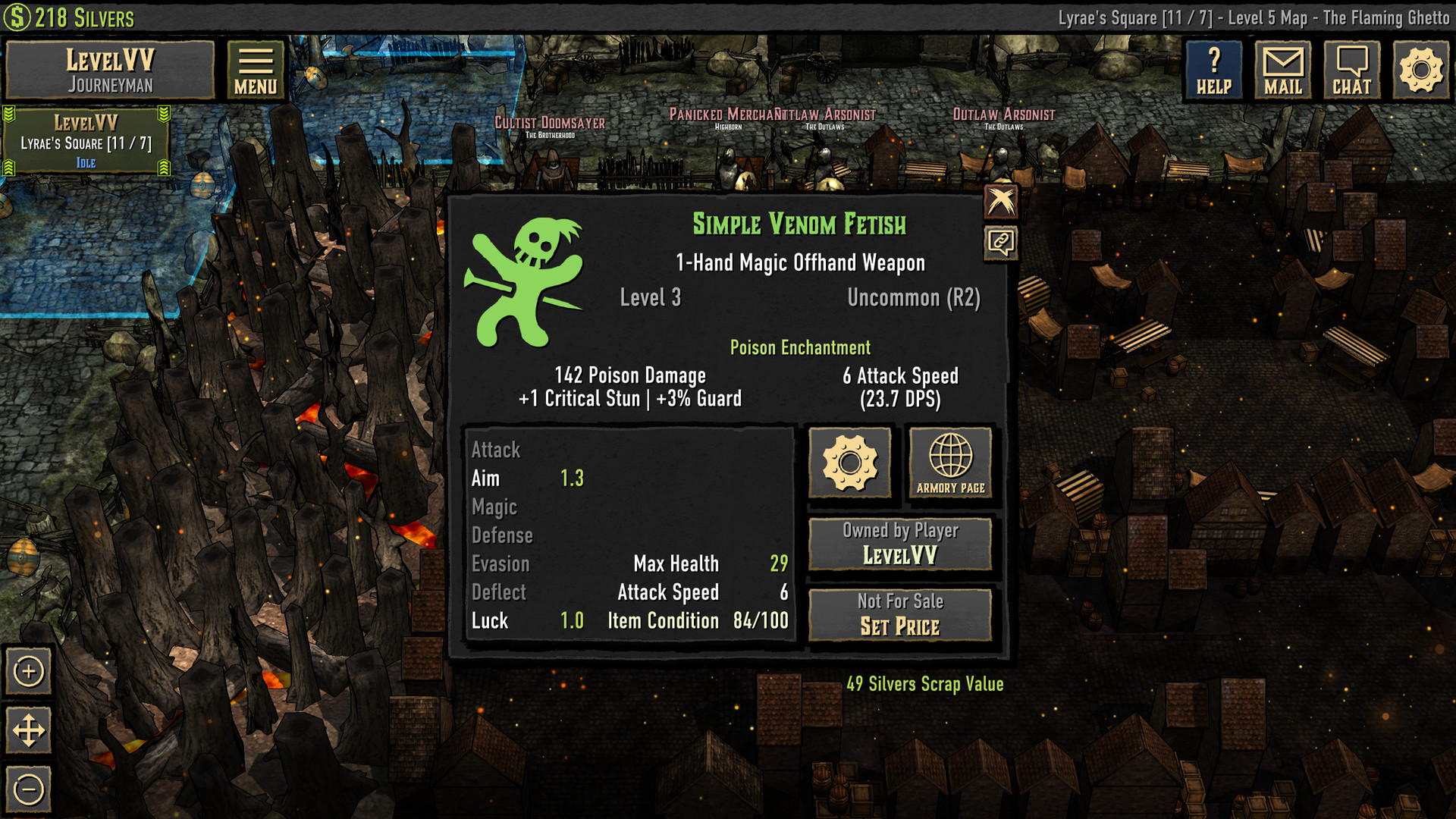 Different items help determine what role a fighter plays, such as holy wands and flasks for Healers, or poisoned dual-wielded daggers for Rogues to maximize backstabs.