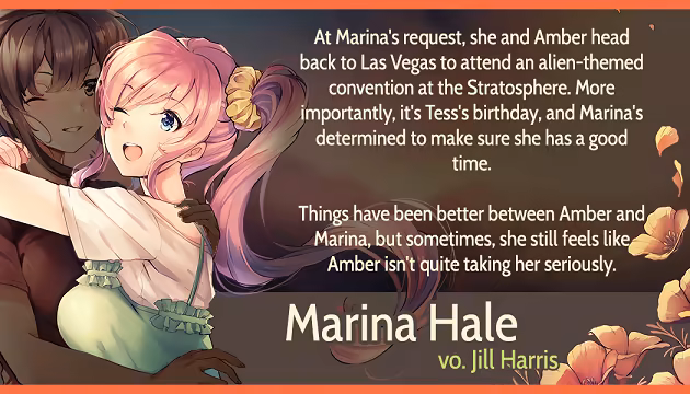 Return to Las Vegas with Amber and Marina in this new Highway Blossoms story! A couple months after the events of the first game, the two girls return to the desert city for an alien-themed convention and to see Tess for her birthday. They also end up reuniting with Cassi, the candy shop girl, who's determined to start following her own dreams.