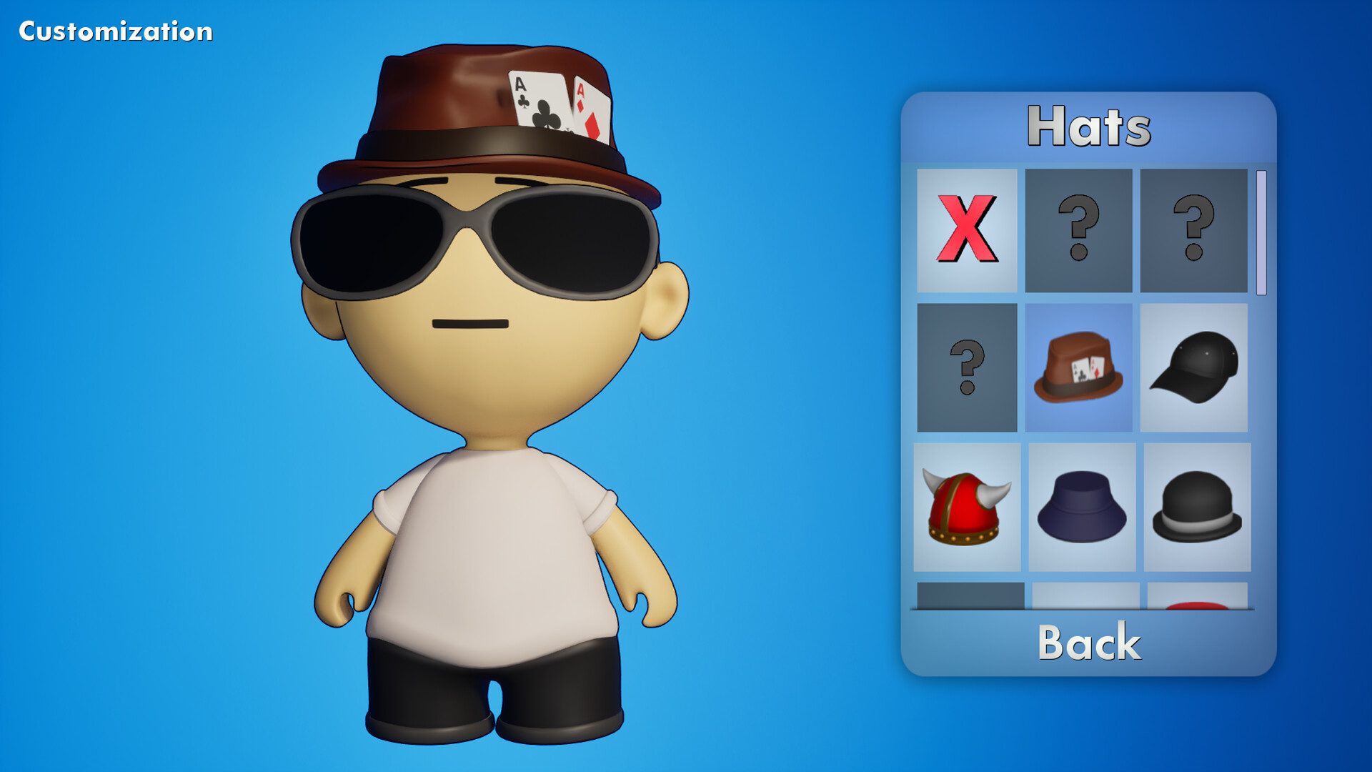 Every character in the game is unique and you will create your own! Customise your character however you like. There are dozens of cosmetic items available that you either get for free or from achievements.