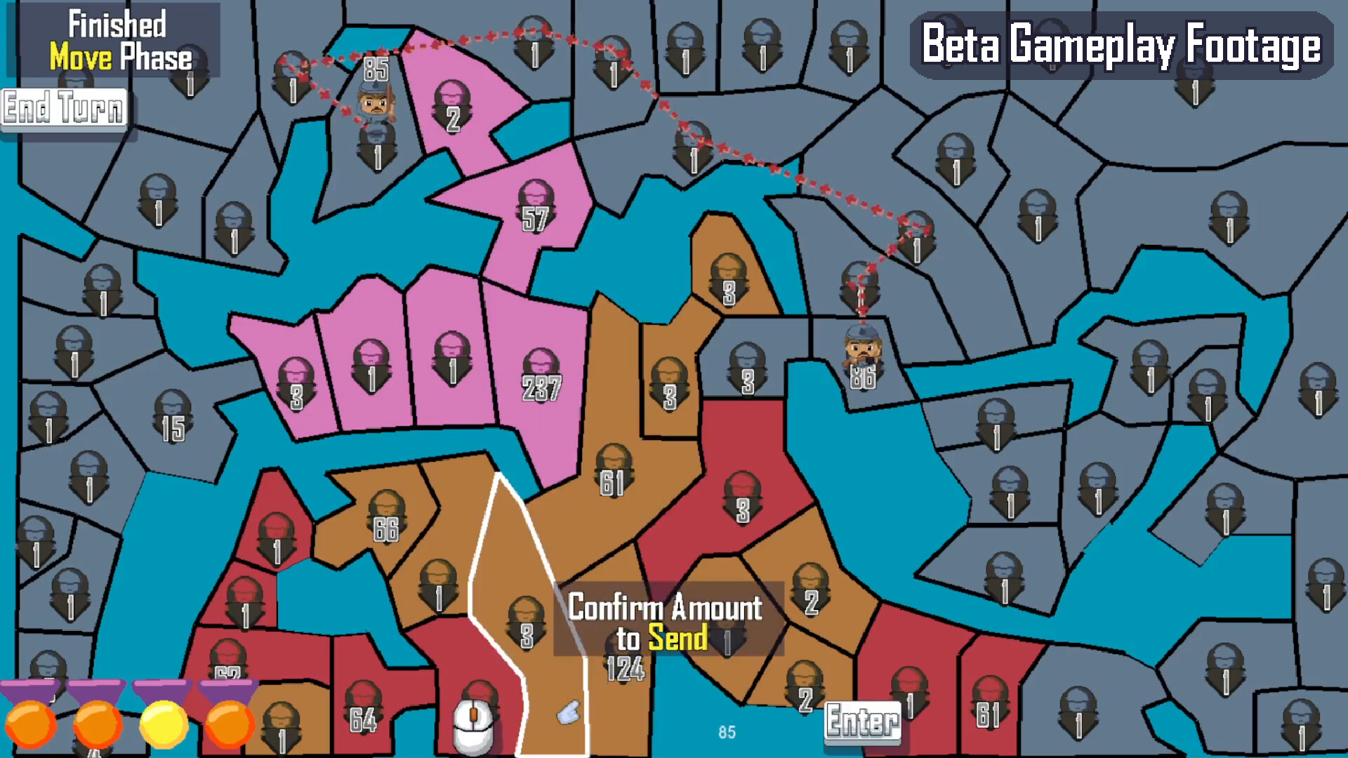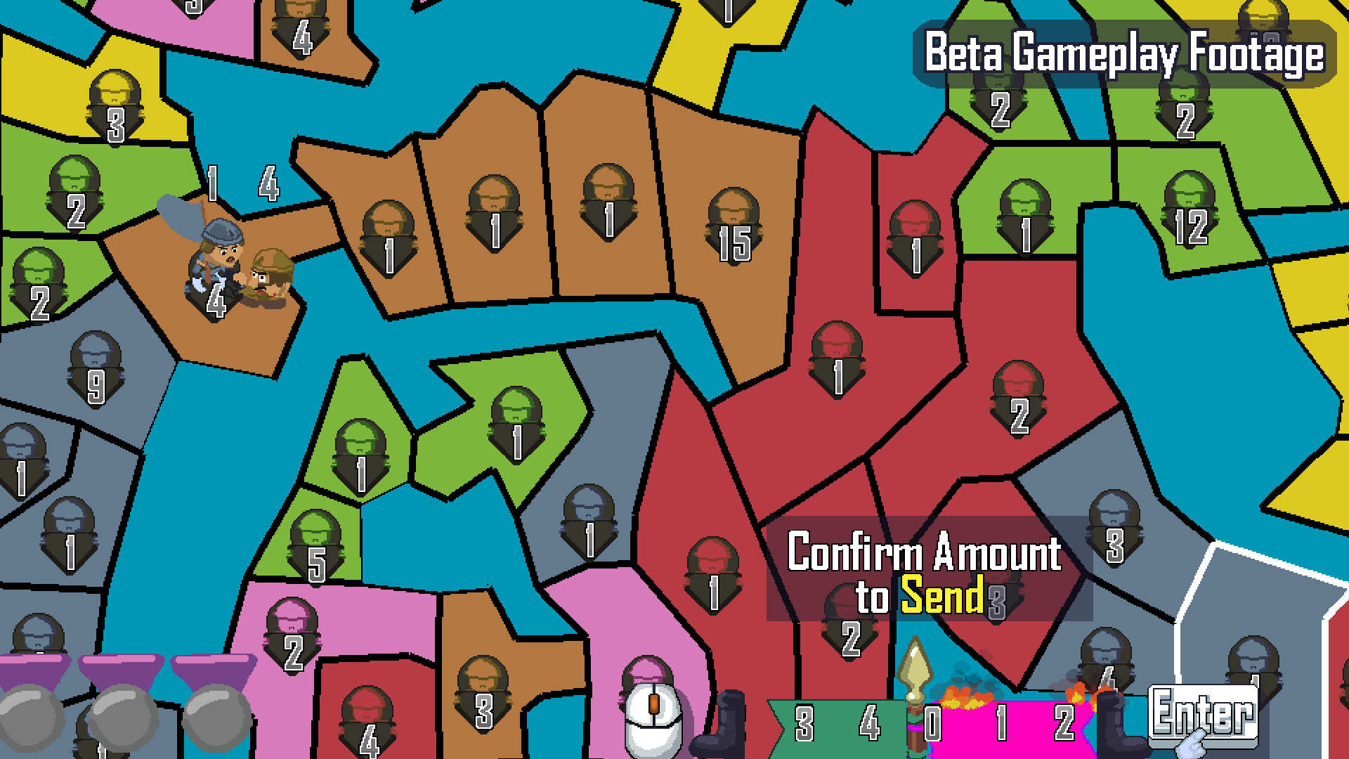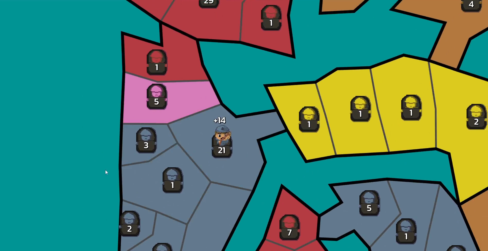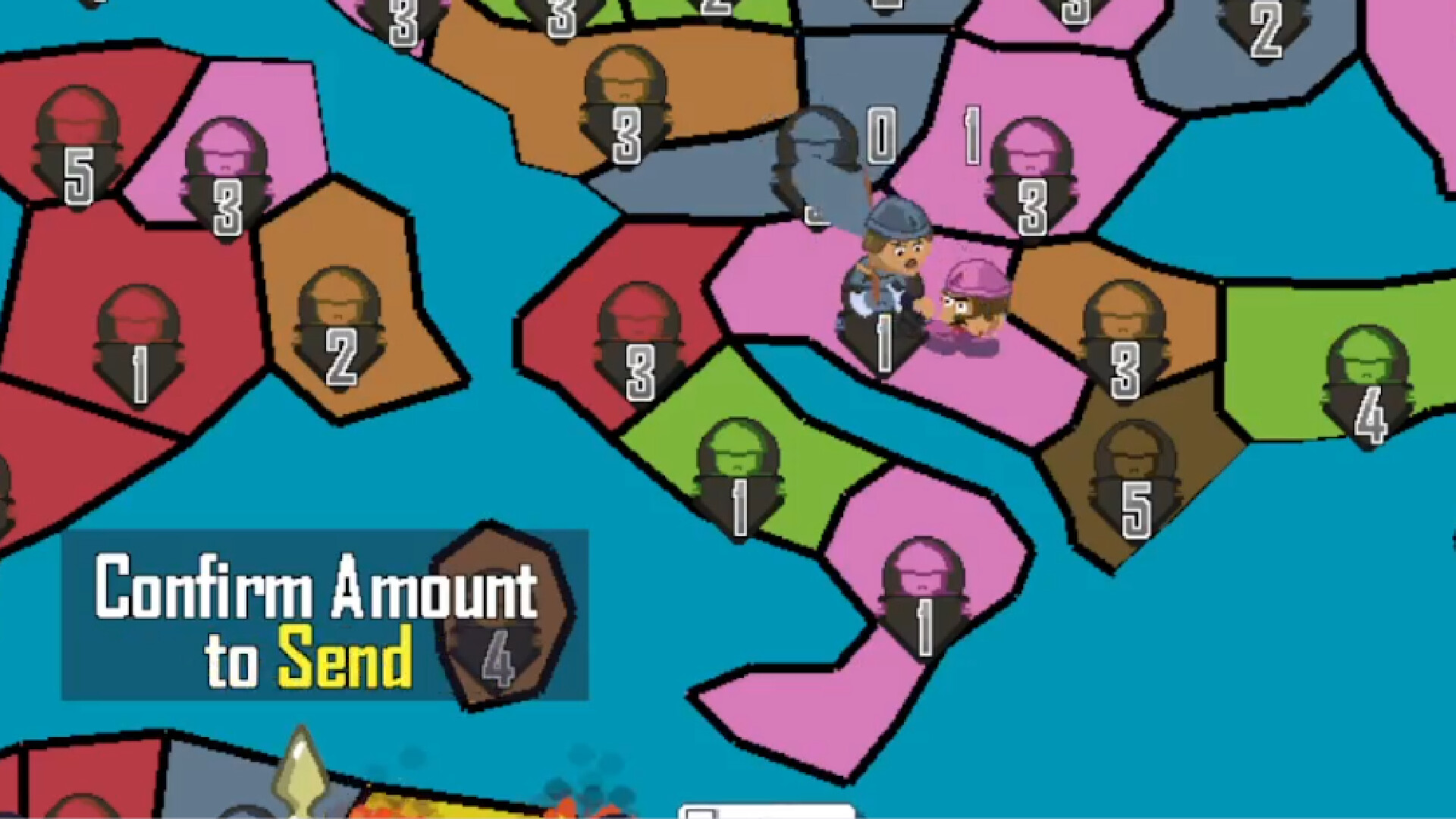 Once all players have taken their turn, a shoot'em up minigame starts. Depending on how well you perform, you will get bonuses that will aid you in conquering the map!