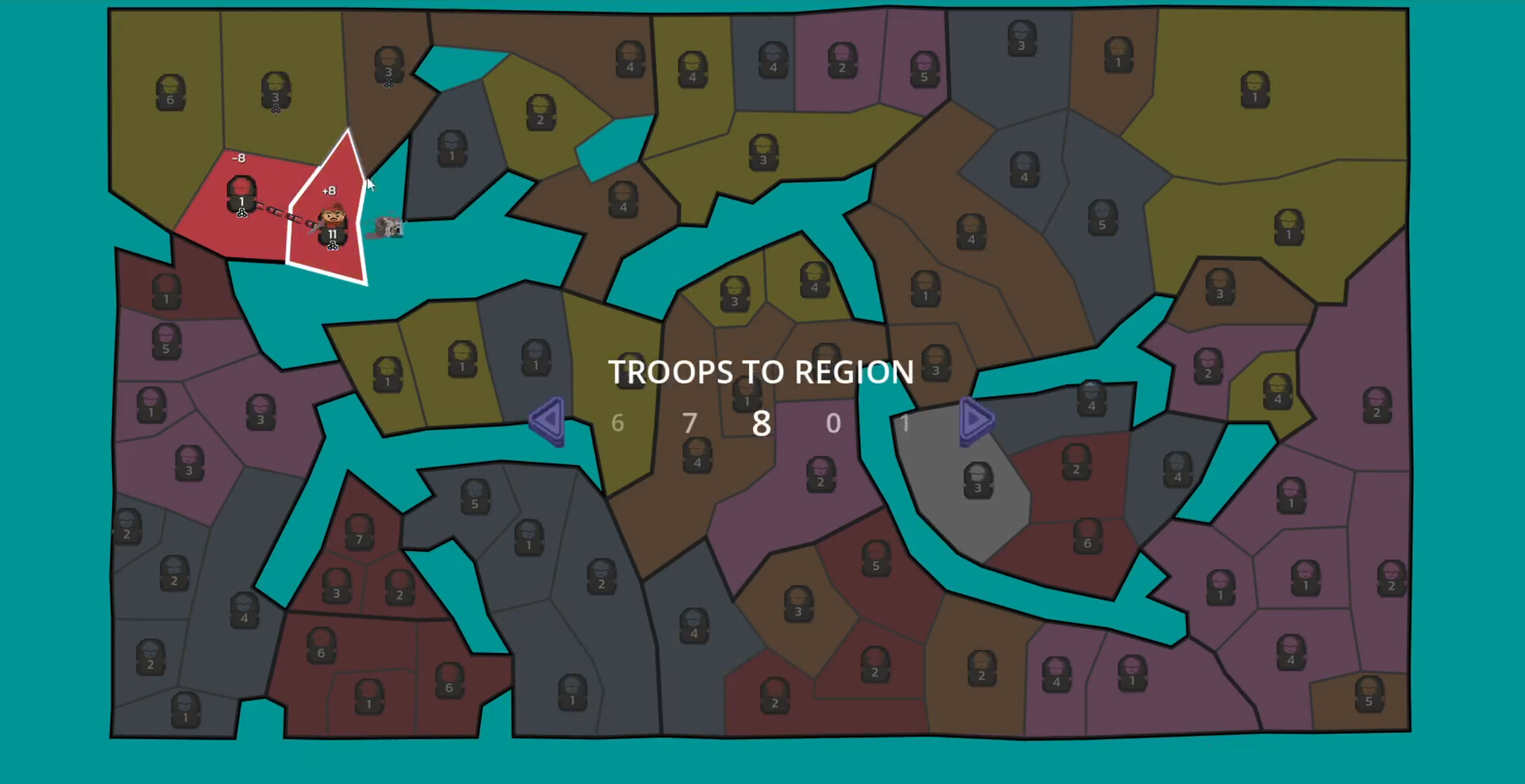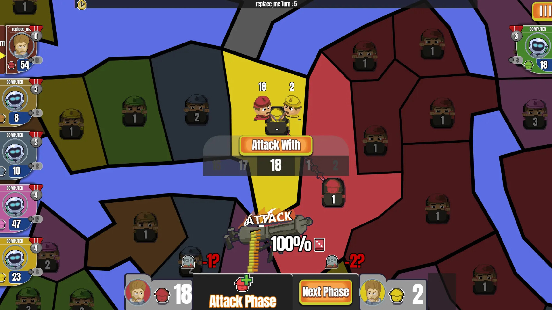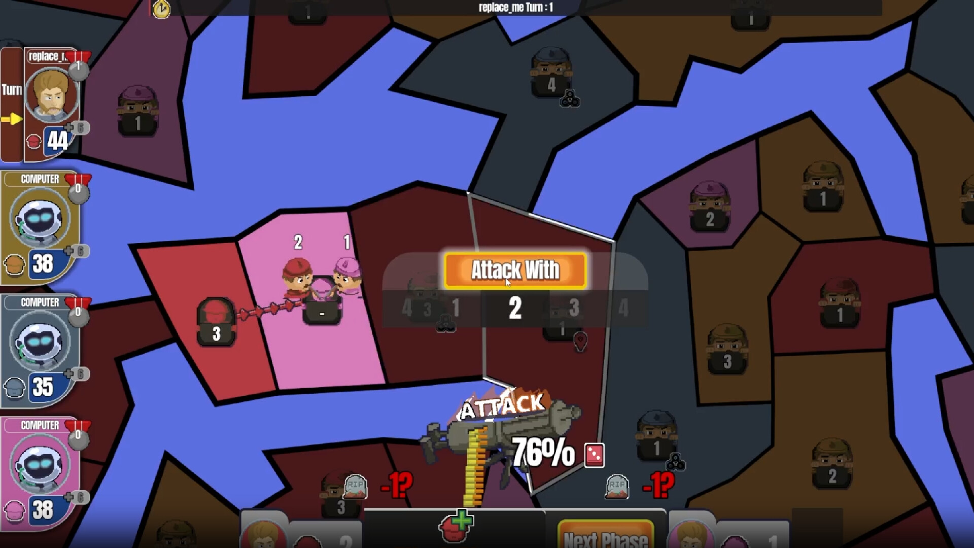 Phase 2: Attack from your territories and conquer more land and regions that will give you bonuses.