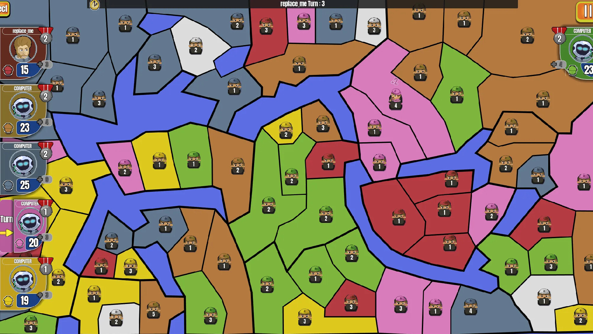 Once all players have taken their turn, a shoot em up minigame starts. Depending on how well you perform, you will get bonuses that will aid you in conquering the map!