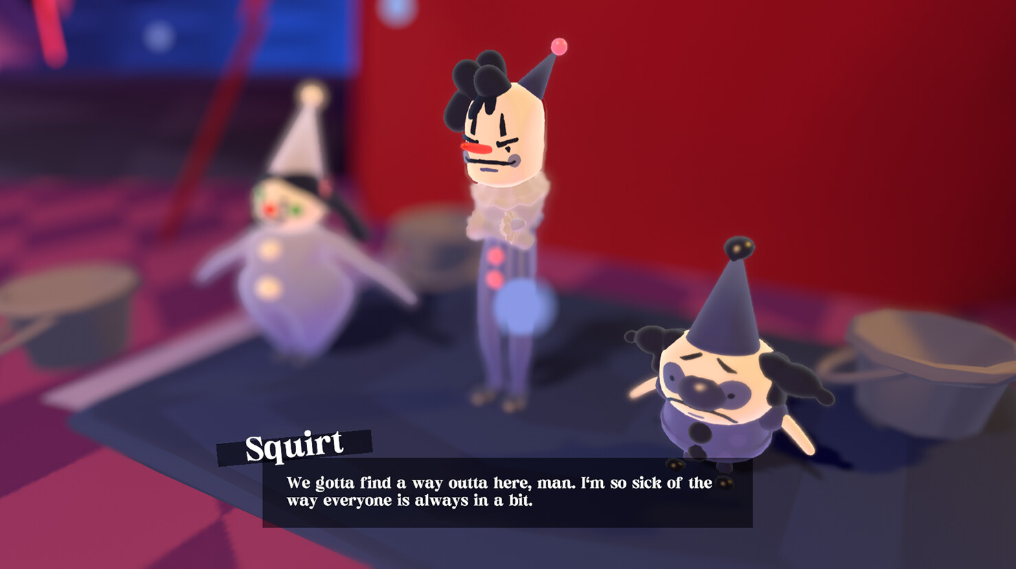With that fateful HONK you've been transported to the strange and silly world of Clownside, where everyone is a clown. You'll need to master the clown-art of ballooning as you search for clues and interrogate a wild and whimsical cast of clowns.