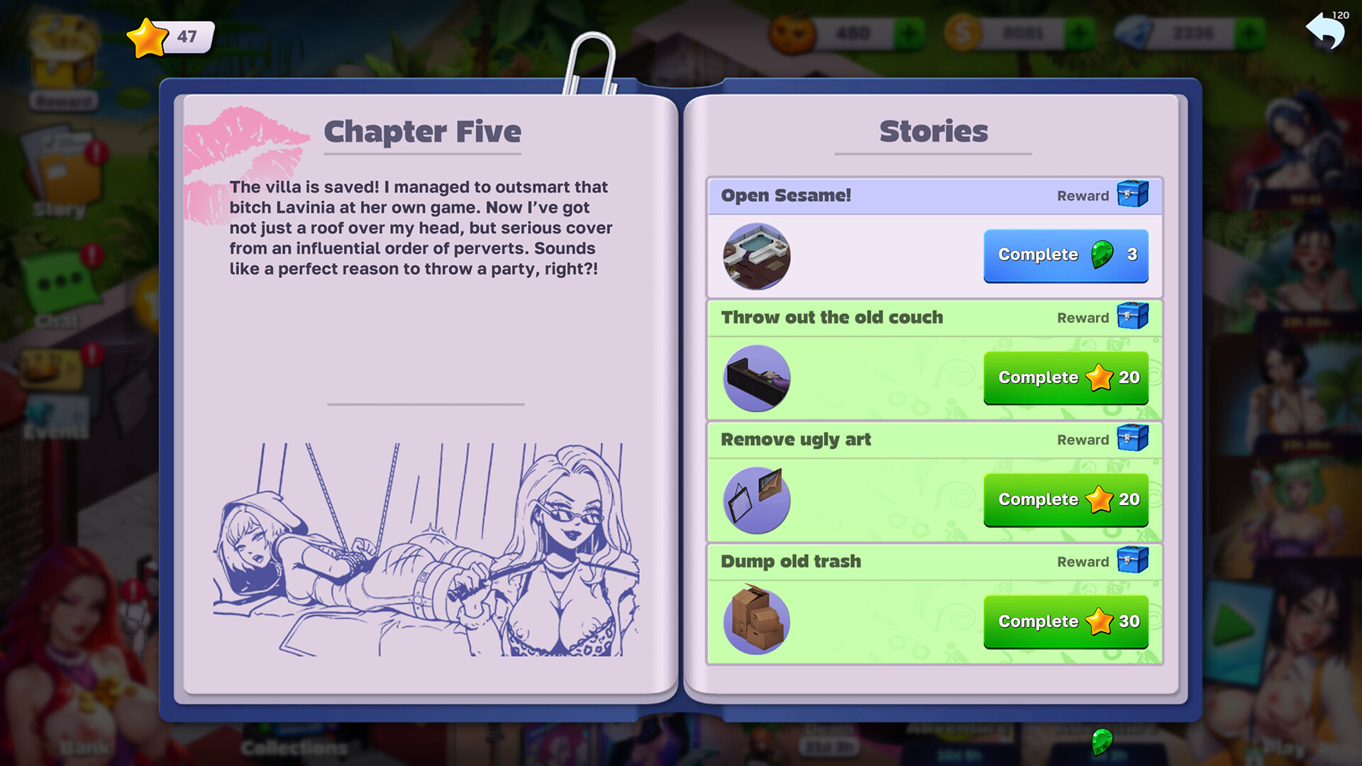The erotic content and H-scenes are worthy of the king of the sex villa. With its epic, high-quality art style, this adult game promises loads of steamy scenes and mind-blowing chats with all the naughty girls that aspire to be part of your empire!